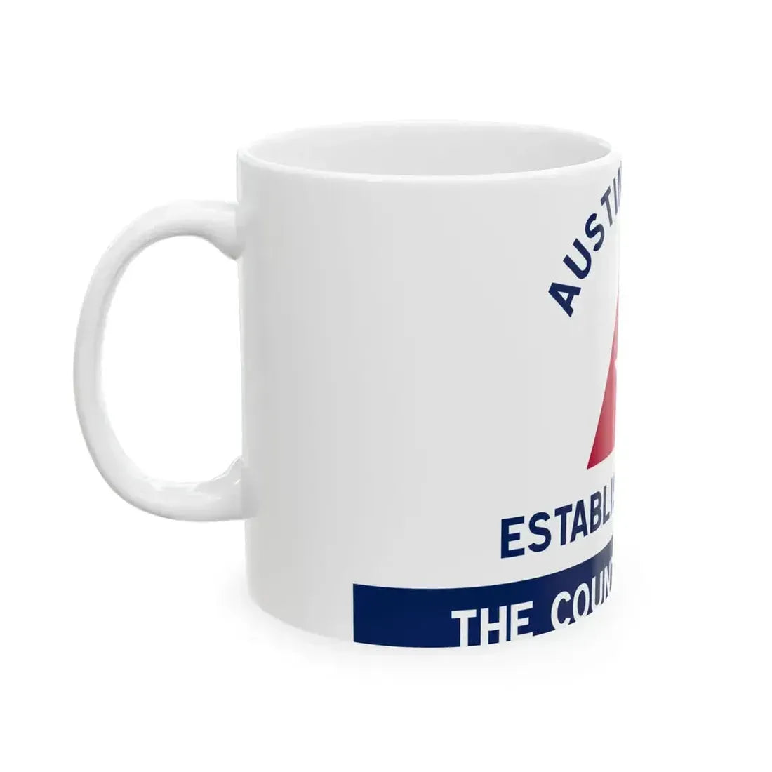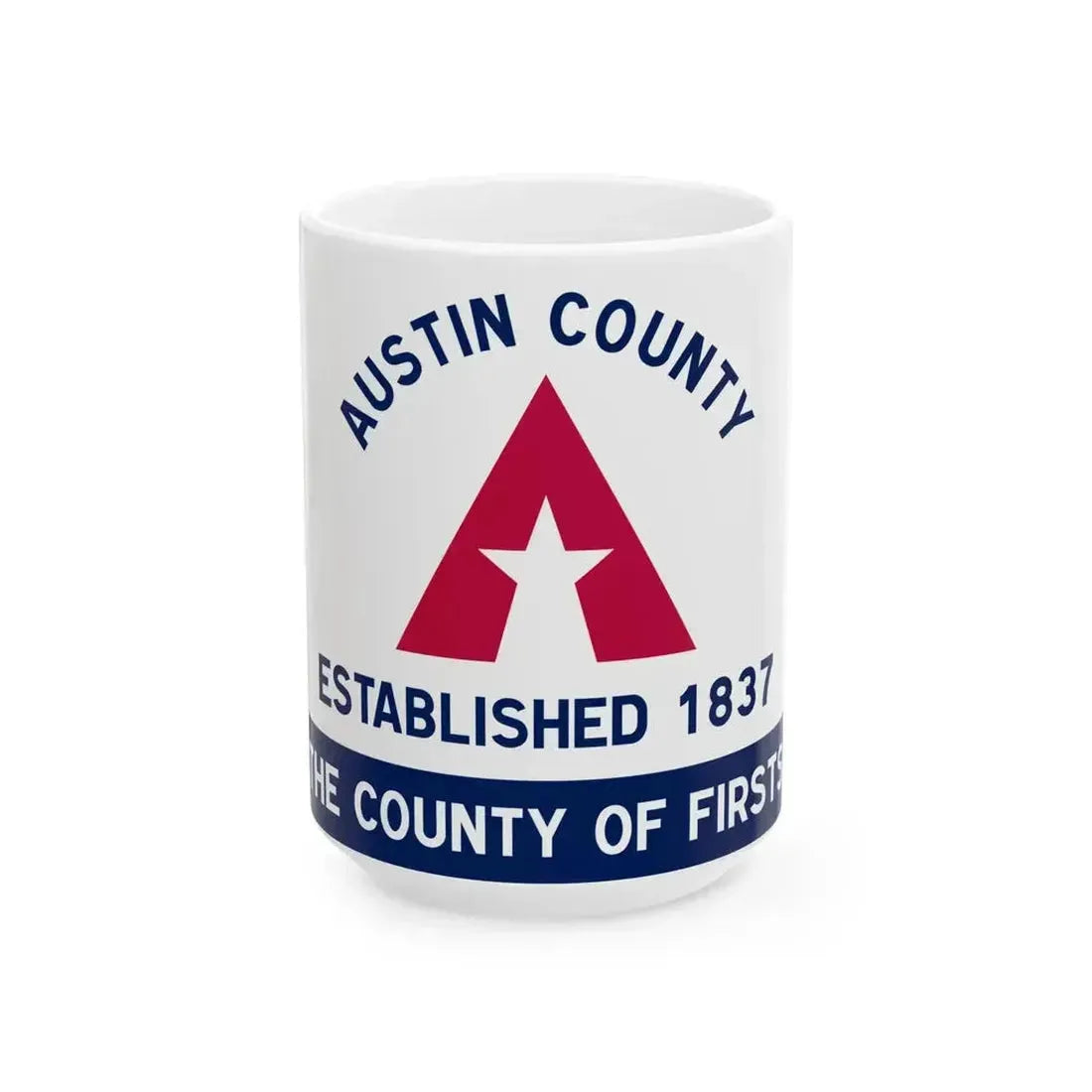 Displaying the Flag of Austin County on a daily basis adds a touch of regional pride to your routine. Whether you're enjoying your morning coffee at home or sipping on a beverage at work, this mug serves as a conversation starter and a symbol of your appreciation for the Lone Star State. This design makes an excellent gift for anyone who cherishes Texas history or Austin County's distinct identity.
