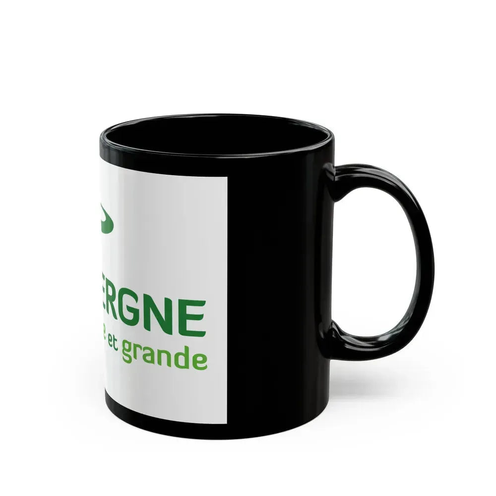 The "Flag of Auvergne France 2 - Black Coffee Mug" is a unique piece of drinkware that showcases the symbol of the Auvergne region in France. This historic flag, with its distinctive design featuring a red field bearing three white fleurs-de-lis arranged in a vertical line, is prominently displayed on this mug. The black ceramic base provides a striking contrast to the bold colors of the flag, creating an eye-catching and visually appealing design.
