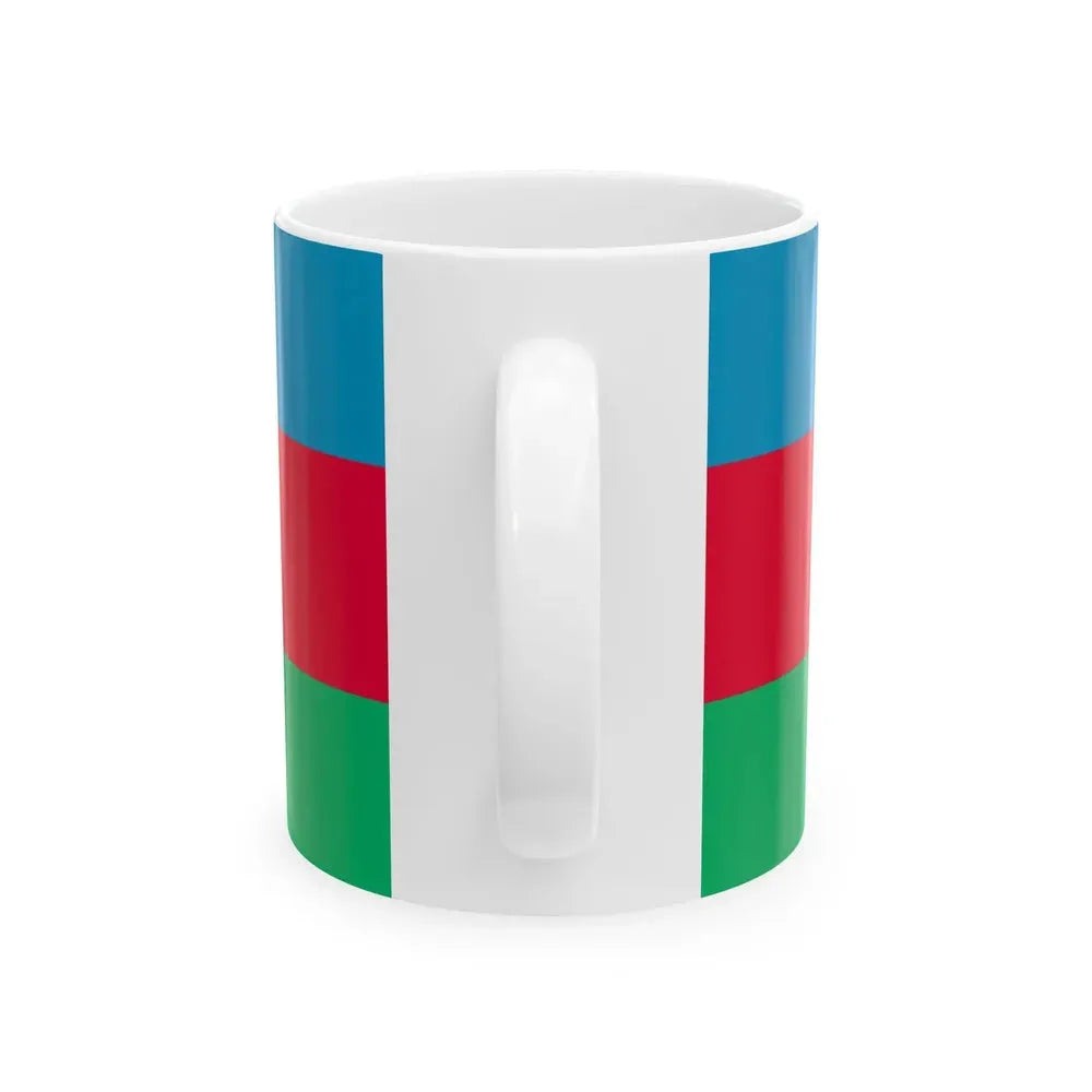 This White Coffee Mug showcases the Flag of Azerbaijan as it was from 1991 to 2013. The design on this mug is a testament to the nation's rich history and cultural identity. The flag, with its tricolor background (blue, red, and green), and the white eight-pointed star in the center, symbolizes the unity of the Azerbaijani people. This coffee mug serves as a unique piece for those who appreciate not just Azerbaijan's contemporary identity but also its historical journey.