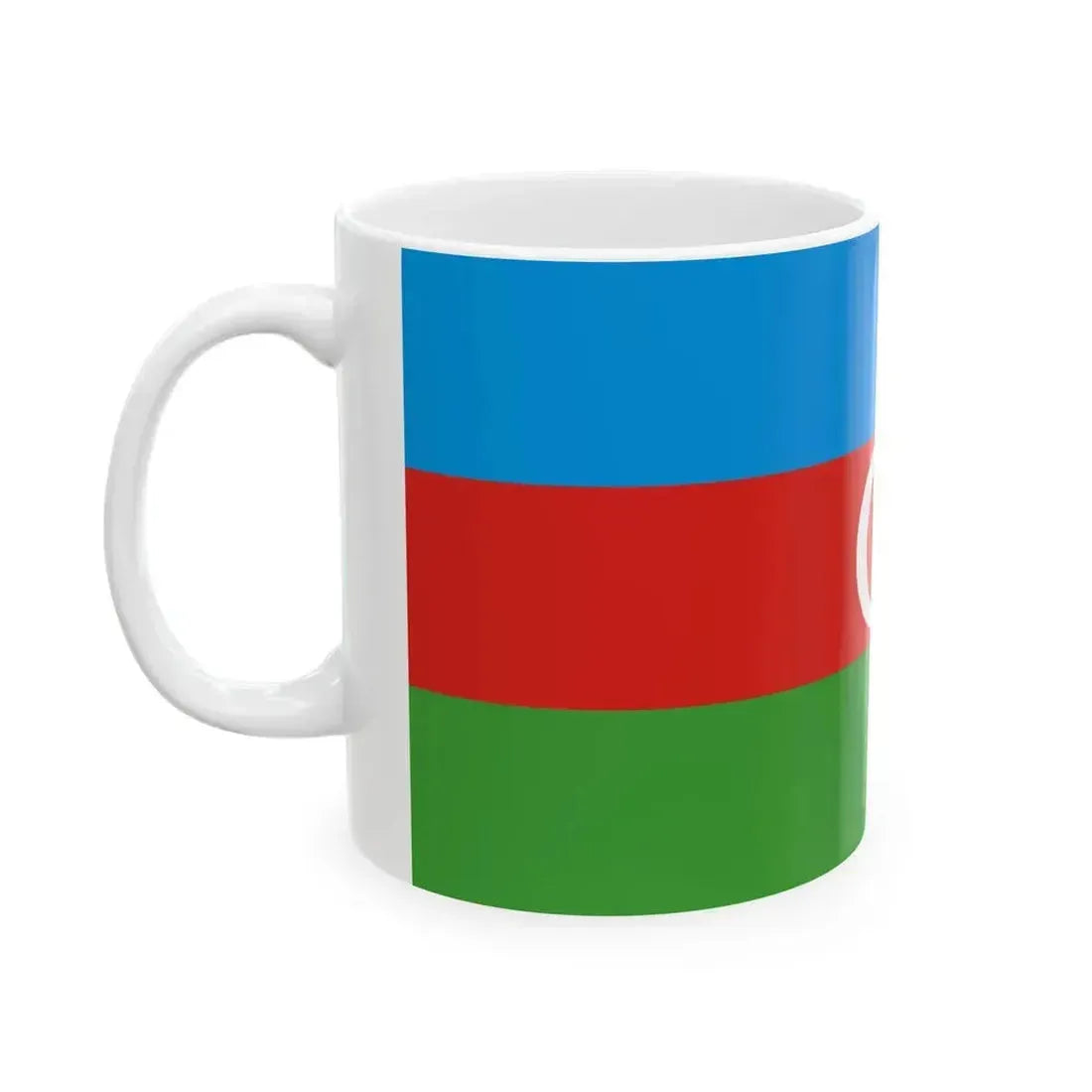 Embrace the rich cultural heritage of Azerbaijan with this unique White Coffee Mug featuring a bold and vibrant design inspired by the flag of this fascinating nation. The mug showcases the deep blue background symbolizing the Caspian Sea, the eight-pointed star representing the Turkic tribal Confederation, and the three horizontal stripes signifying the unity of the three regions of Azerbaijan: Shirvan, Gobustan, and Kabala. This design is not only a tribute to Azerbaijani identity but also an eye-catching addition to any coffee enthusiast's collection.