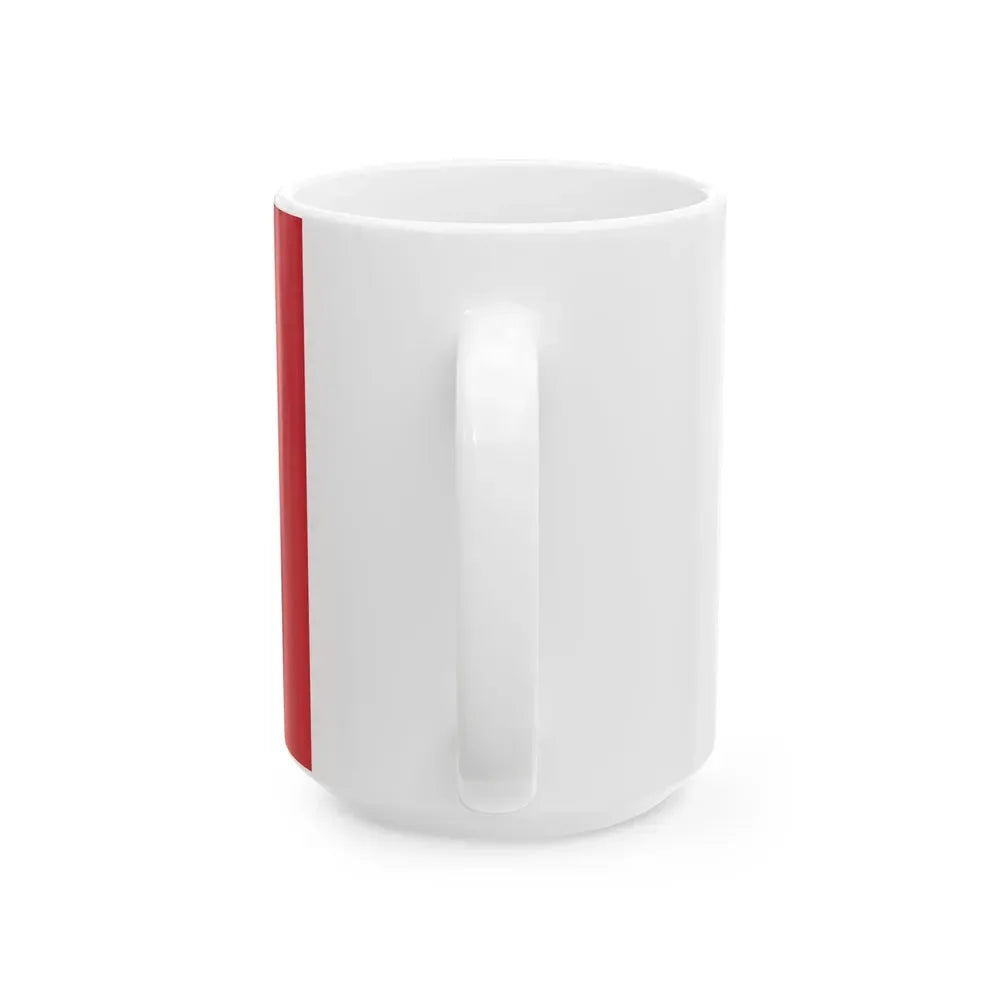 The "Flag of Bahrain 1972-2002" design on this white coffee mug pays tribute to the evolution of Bahrain's national flag during that period. The flag features a white background with a red Isometric Square at the hoist, followed by two smaller red squares stacked vertically, and then a third, larger red square taking up the remainder of the flag. This unique tricolor design is symbolic of Bahrain's rich history and cultural heritage. The coffee mug itself is a practical and stylish way to showcase this historic artwork, making it perfect for anyone who appreciates unique and cool drinkware, as well as those with an interest in Middle Eastern history or Bahraini culture.