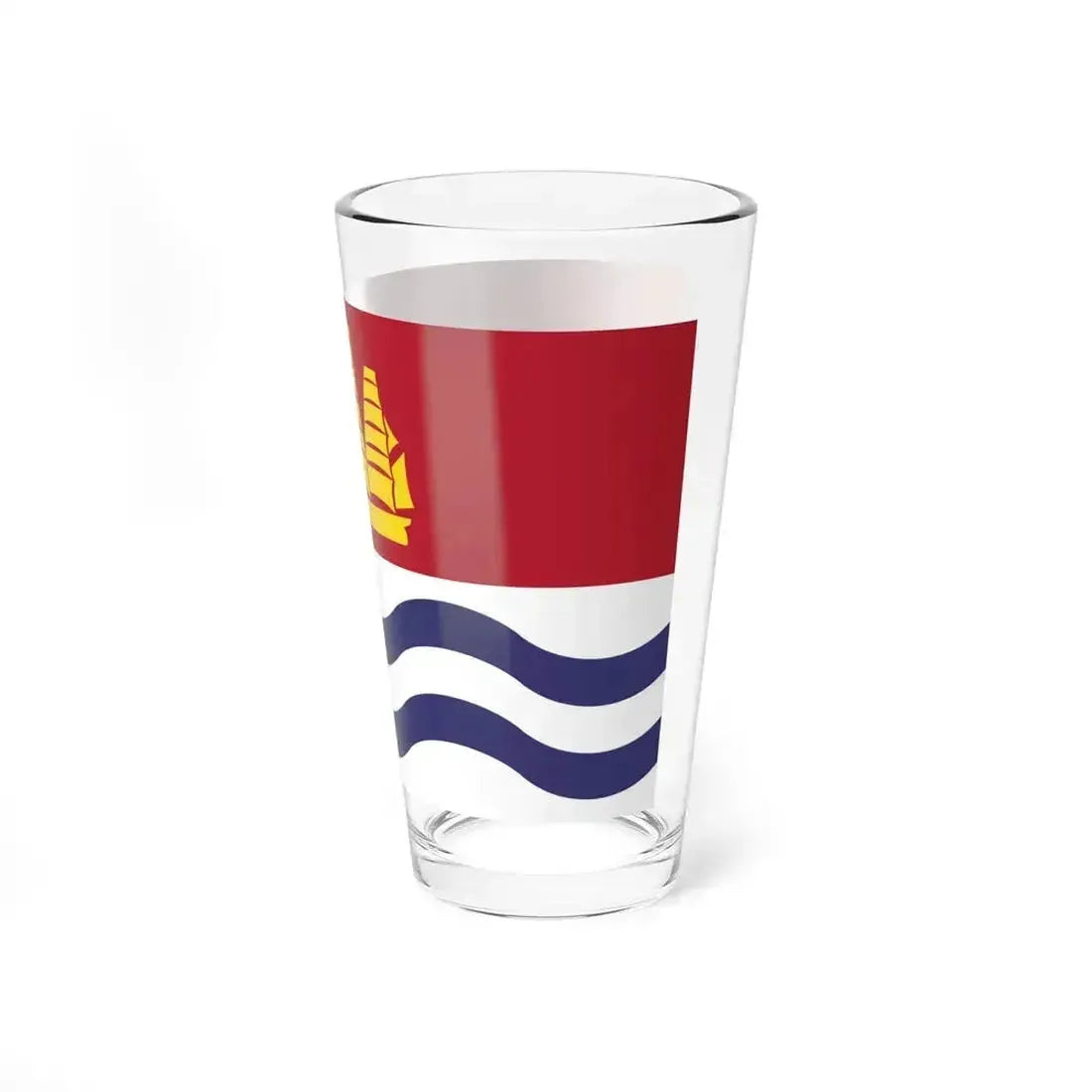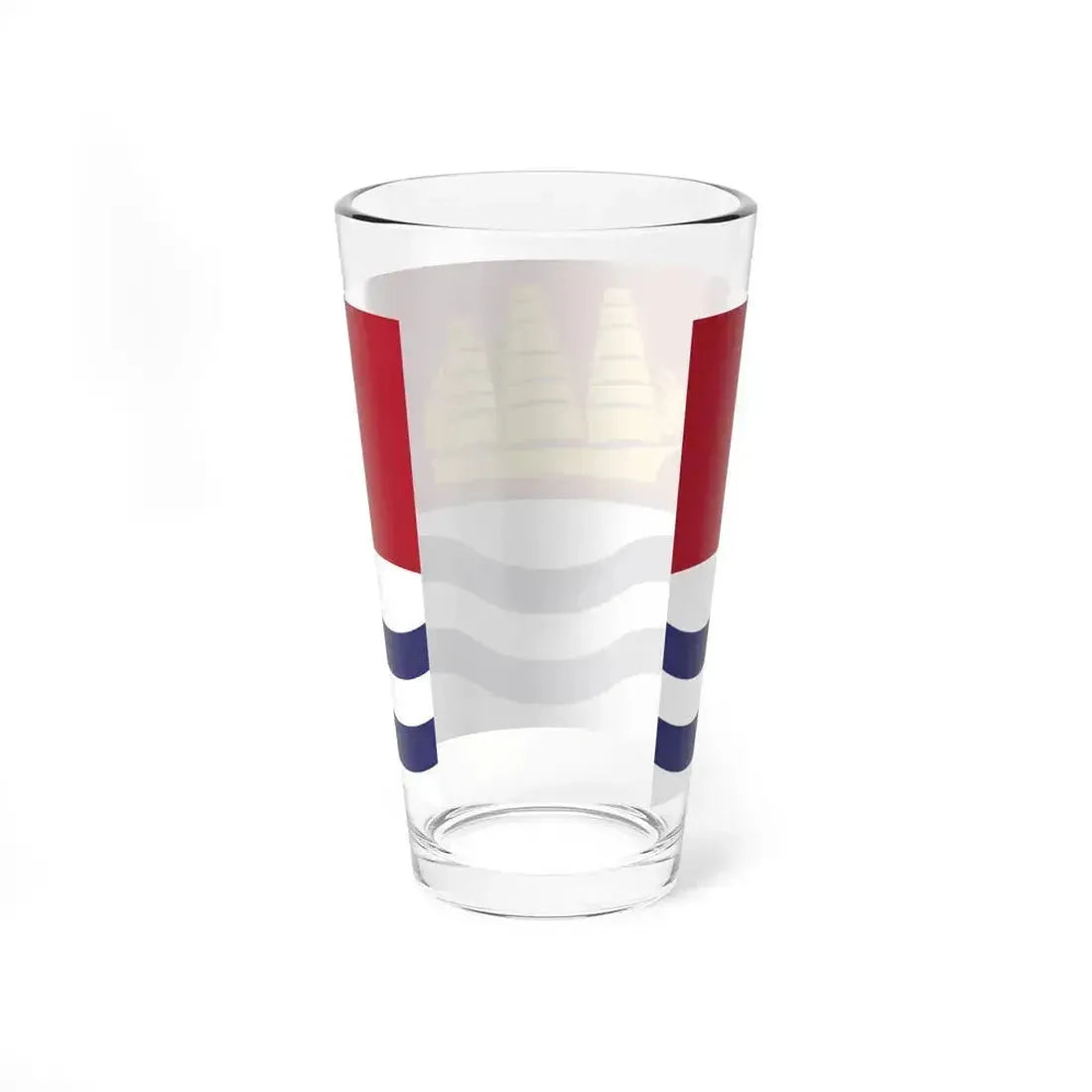 The Flag of Bath, Maine pint glass showcases a unique tribute to the city's rich maritime history and vibrant culture. This 16oz drinkware features the official flag of Bath, which includes a shield adorned with a St. George's Cross symbolizing the city's ties to Maine's English settlers. The shield is framed by a scroll bearing the city's motto, "Semper Fidelis," meaning "Always Faithful." This design makes for an excellent conversation starter and is perfect for anyone who appreciates unique and cool drinkware, as well as those with a connection to Bath, Maine or admirers of American coastal towns.