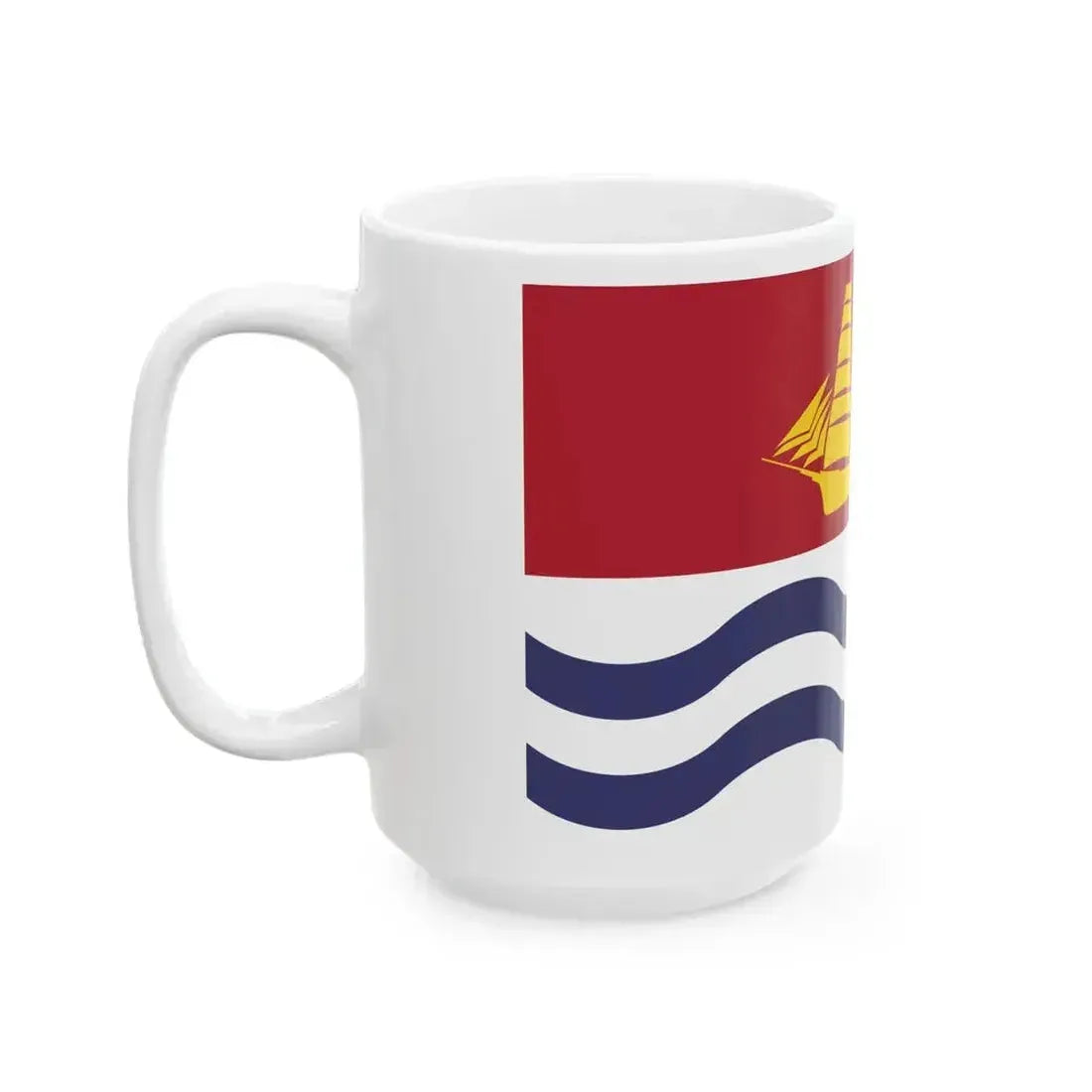 The "Flag of Bath Maine (United States) White Coffee Mug" is a unique piece of merchandise that showcases the civic pride for the city of Bath, Maine. The design on this mug reproduces the official flag of Bath, which features the city seal in the center surrounded by a wreath of oak and laurel leaves. This historic flag symbolizes the city's rich maritime history, with its seaport and shipbuilding traditions represented by the three anchors arranged around the seal. The white background lends a clean, modern touch to this classic design.