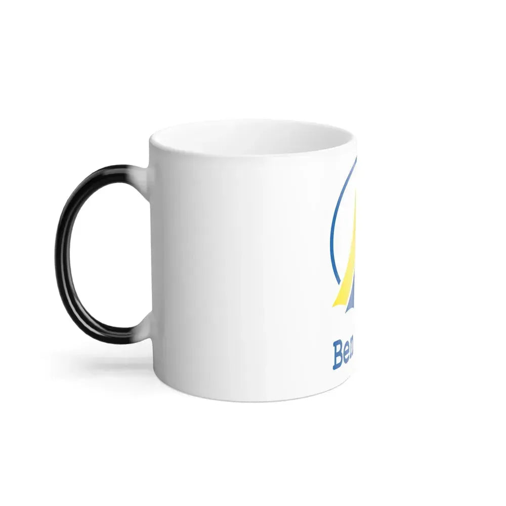 This unique Color Changing Coffee Mug is a tribute to the Flag of Benbrook, Texas. The mug showcases a vibrant design inspired by the city's flag, with its distinct red, white, and blue color scheme representing unity, courage, and freedom. The design also includes elements symbolic of Benbrook's rich history, such as the silhouette of the town and its famous windmill.