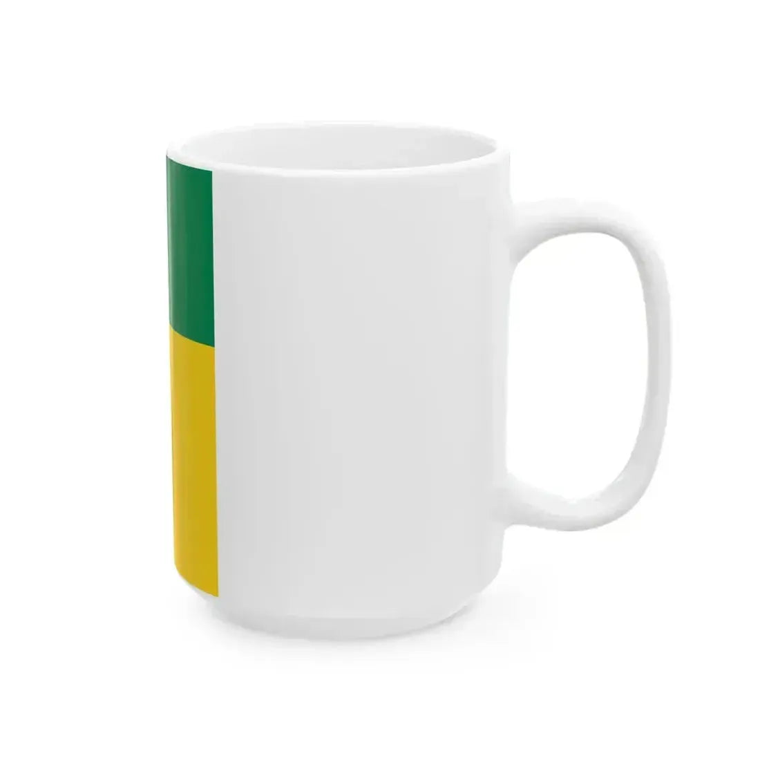 Step into the world of African symbolism with this unique vertical design coffee mug inspired by the Flag of Benin. This stunning artwork showcases the vivid colors and powerful imagery that represent the rich history and culture of Benin. The mug features a stylized version of the national flag, displaying the yellow stripe, three green stripes, and the red star at the hoist side. This design is perfect for anyone who appreciates unique and cool drinkware as well as those with an interest in African art, history, or geography.