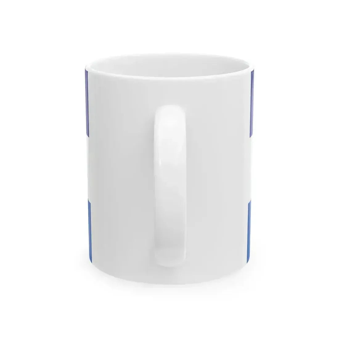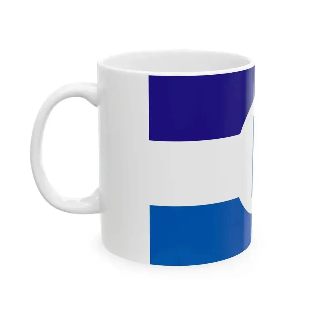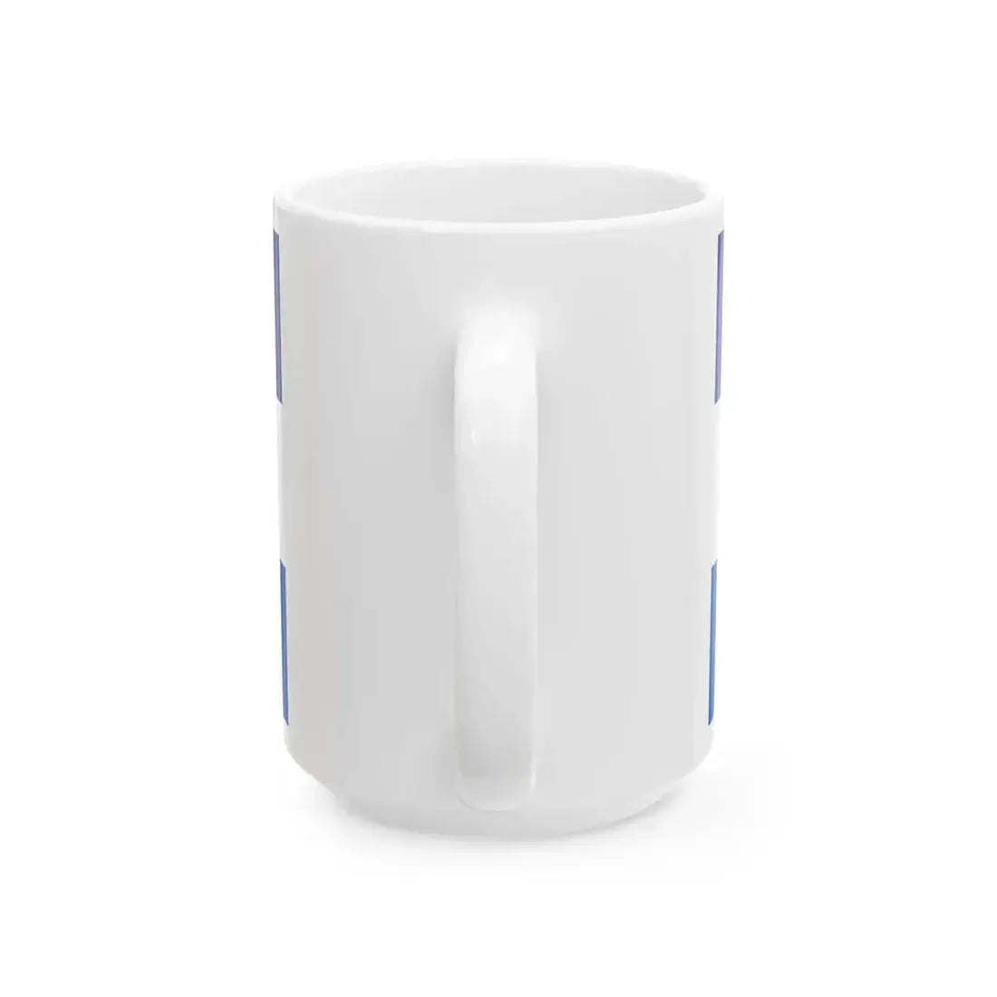 This white coffee mug serves not only as a functional drinkware item but also as an attractive display piece that showcases the design of the Flag of Bensenville. It makes for a thoughtful gift for those who cherish their local heritage, or for anyone interested in American village flags and their unique symbolism. The ceramic material ensures durability, while the white color provides a clean and elegant backdrop for the vibrant flag design.