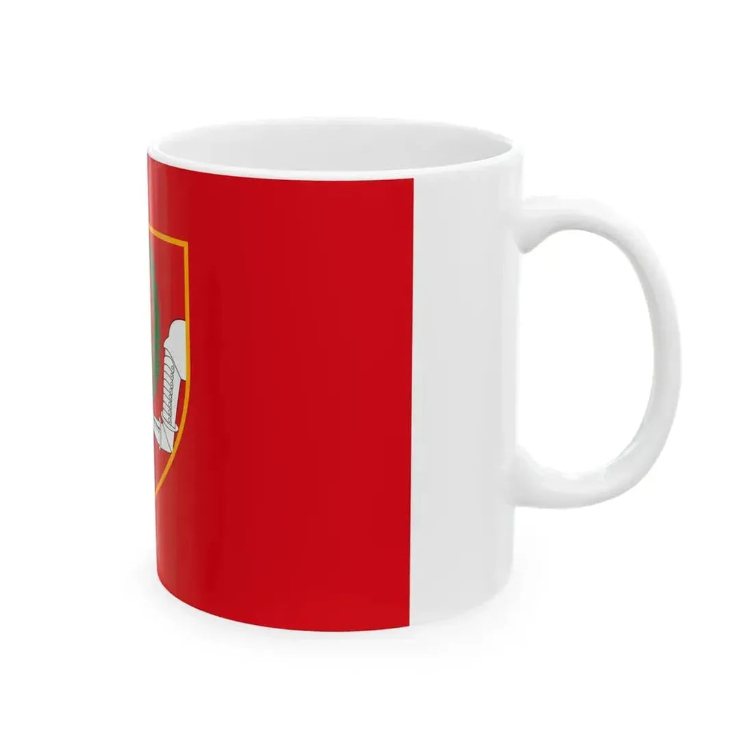 Sturdy white ceramic mugs available in 11 oz (≈330 ml) and 15 oz (≈440 ml), with a glossy finish and comfortable C-handle — microwave and dishwasher safe, and made from lead- and BPA-free materials.