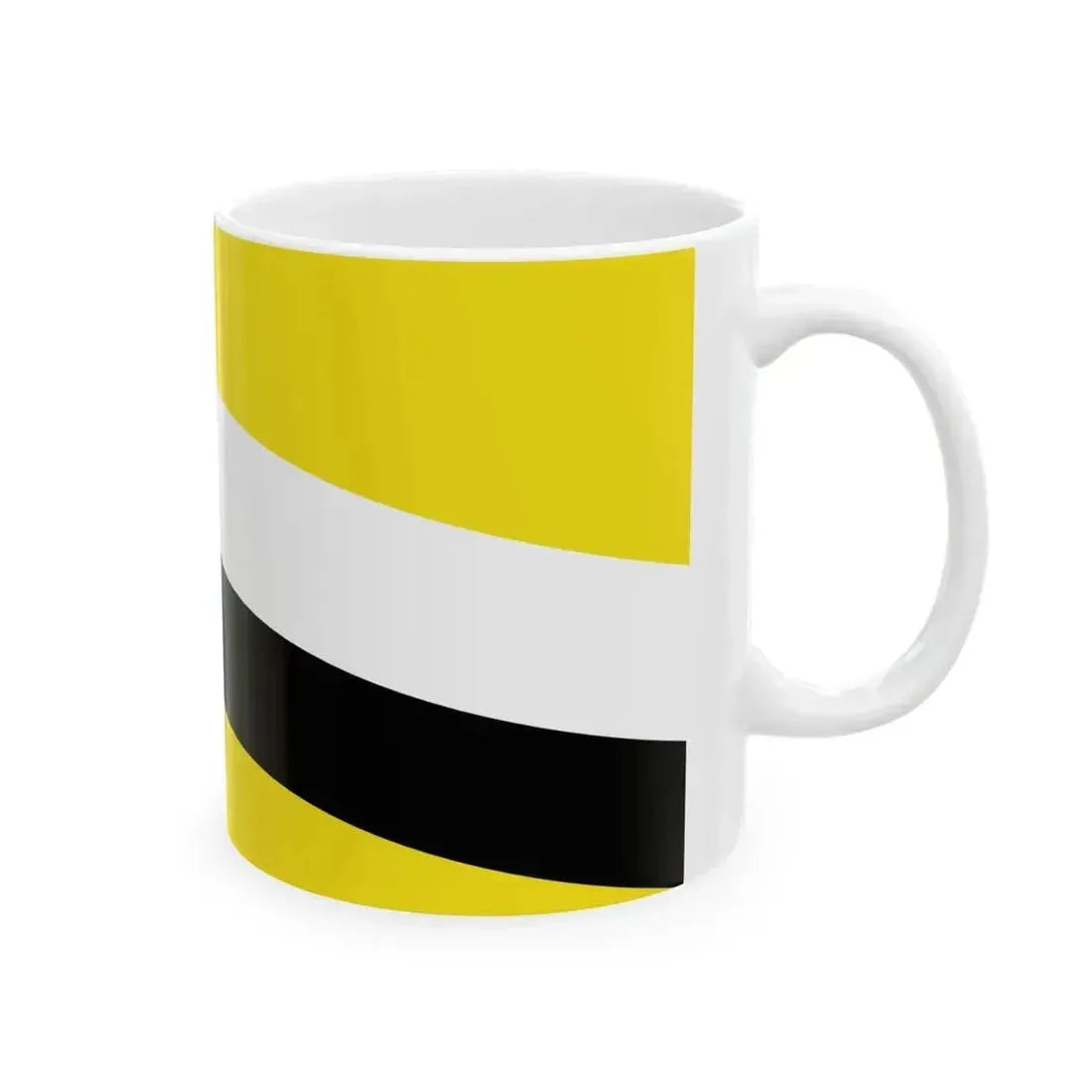 This White Coffee Mug showcases a historically significant design - the Flag of Brunei from 1906 to 1959. The flag features a white field with a red crescent moon positioned towards the hoist and five white five-pointed stars arranged in a horizontal line across the center. This symbolic artwork represents the unity and strong Islamic faith of the people of Brunei, making it an ideal choice for history enthusiasts or those with a deep appreciation for Southeast Asian culture. Immerse yourself in a piece of Bruneian history every morning as you enjoy your coffee. Perfect for anyone who appreciates unique and cool drinkware.