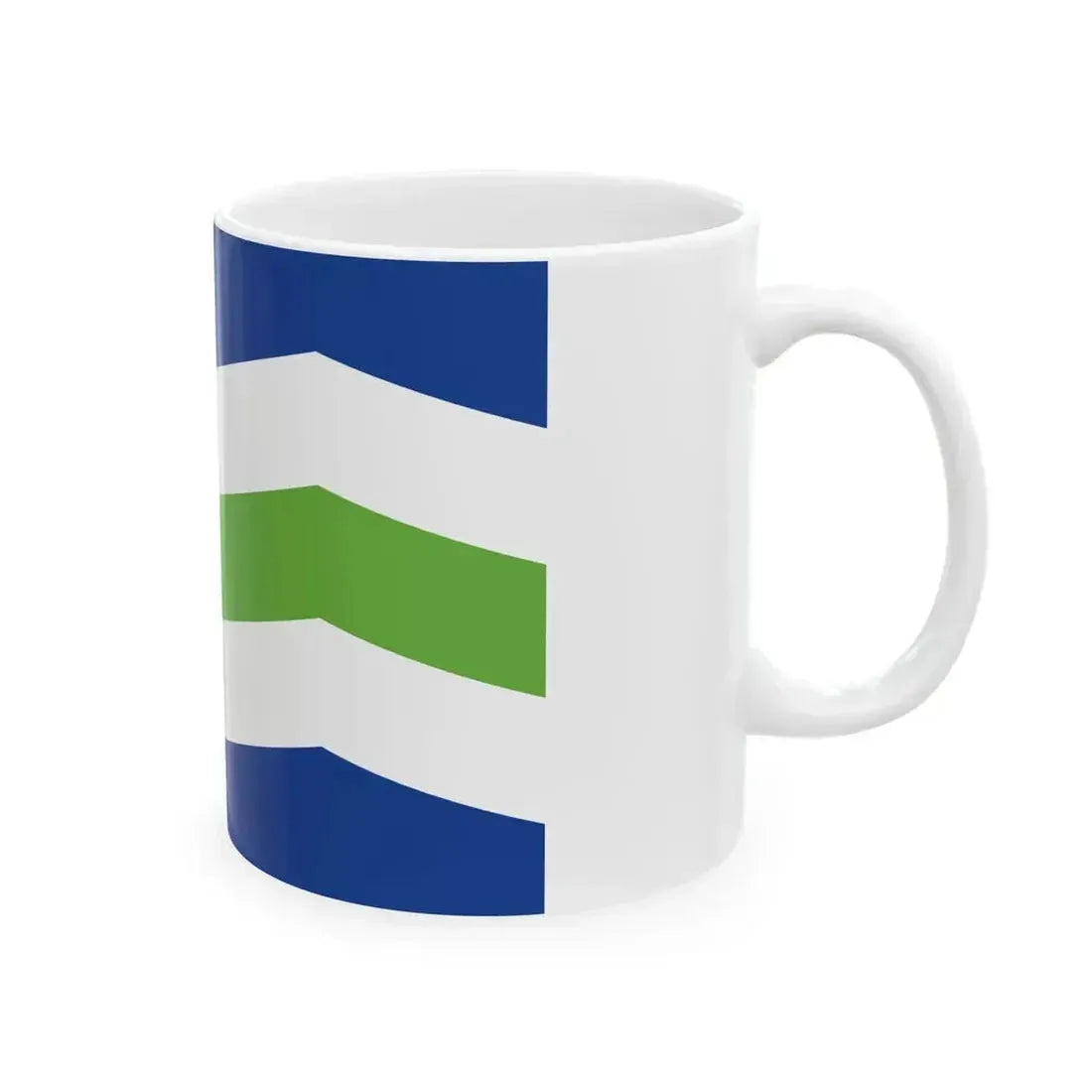 This White Coffee Mug showcases a design inspired by the iconic Flag of Burlington, Vermont, USA. The coffee mug features an interpretation of the city's flag, which boasts three horizontal stripes in green, white, and red โ€“ colors that represent environmentalism, purity, and revolutionary spirit respectively. In the center, a yellow circle with a five-pointed star stands for Burlington itself. This unique drinkware is perfect for anyone who appreciates unique and cool drinkware, as well as Vermont enthusiasts or those interested in American city flags.