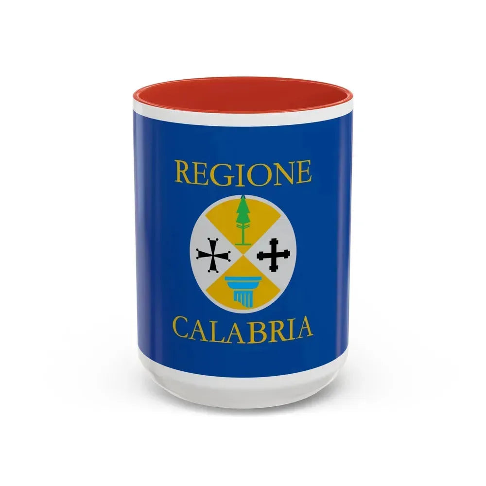 This Accent Coffee Mug showcases an iconic design inspired by the Flag of Calabria, Italy. The mug features the tricolor flag's symbol, a white silhouette of a stalk of wheat in the upper-left quadrant, a white cross throughout, and a white square in the bottom right corner. This mug is perfect for individuals who appreciate the culture and history of Calabria or Italy, as well as those who love unique and tasteful drinkware.