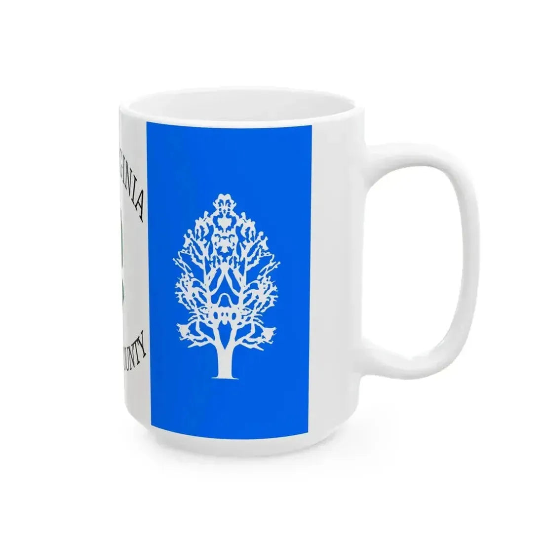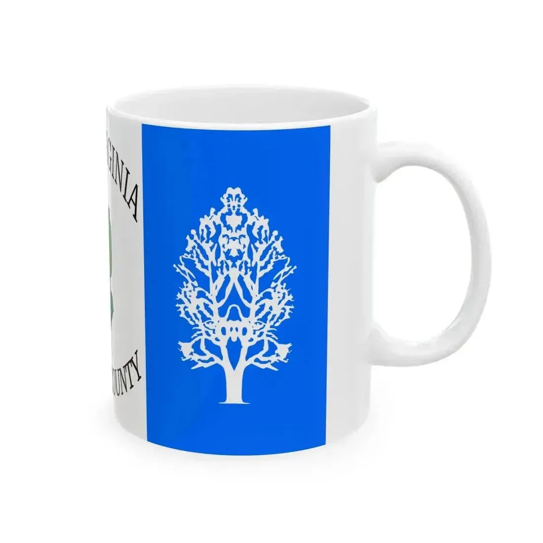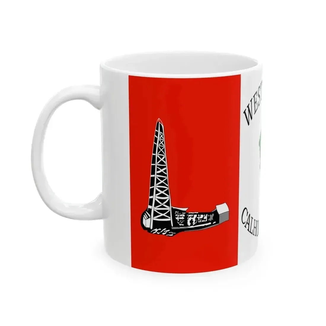 This white coffee mug showcases a distinctive design that represents Calhoun County, West Virginia (USA) through its flag's artwork. The flag, adopted in 1967, features the state seal in the center surrounded by green and white concentric circles, with a blue border enclosing the entire design. The flag symbolizes the county's pride, history, and connection to West Virginia. This mug serves as a unique and eye-catching addition to any coffee lover's collection or as a gift for those who appreciate Americana, historical symbols, or West Virginia culture.