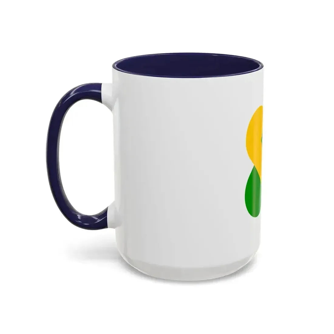 Accent ceramic mugs with a glossy white exterior and a colored interior & handle. Offered in 11 oz (≈330 ml) and 15 oz (≈440 ml), these mugs pair strong visual contrast with everyday durability — lead- and BPA-free.