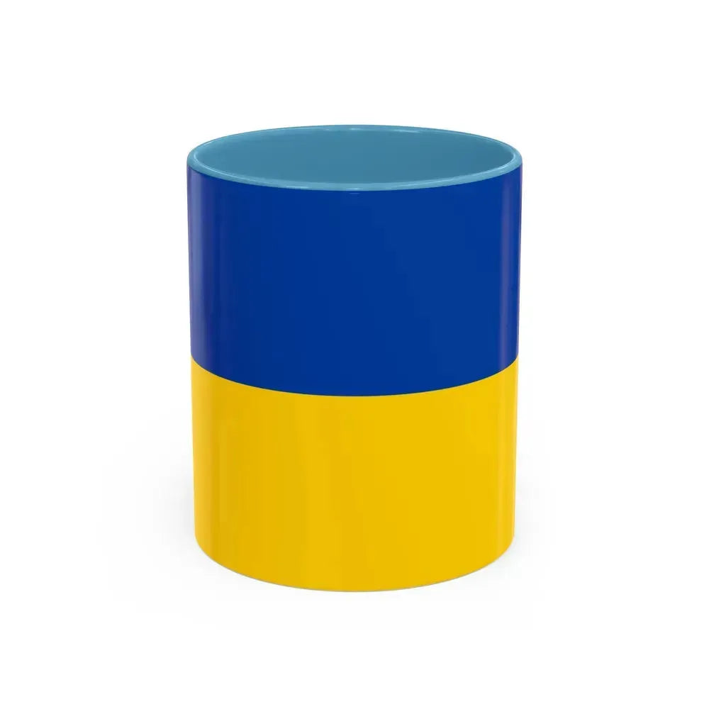Accent ceramic mugs with a glossy white exterior and a colored interior & handle. Offered in 11 oz (≈330 ml) and 15 oz (≈440 ml), these mugs pair strong visual contrast with everyday durability — lead- and BPA-free.