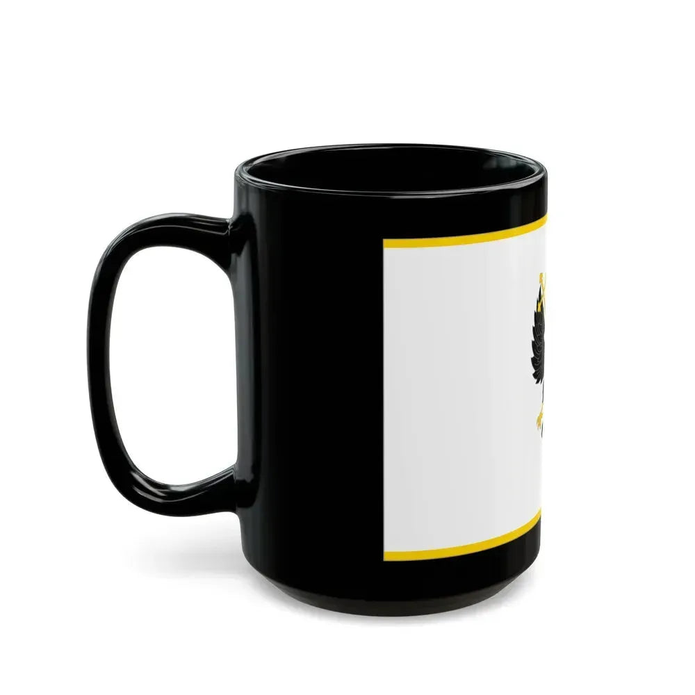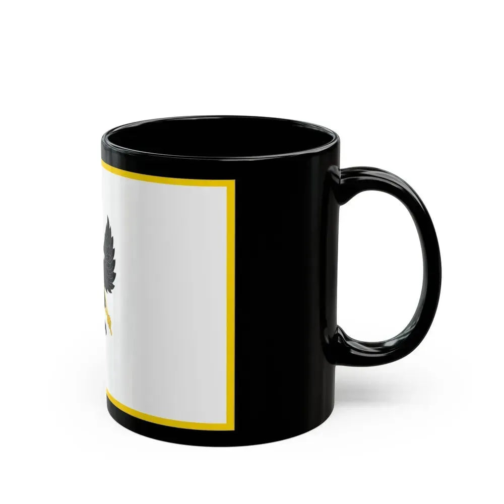This Black Coffee Mug features a striking design inspired by the Flag of Chernihiv, Ukraine. The design showcases the city's historical coat of arms, which dates back to 1725 and reflects its rich heritage. The emblem includes a golden trident, an important symbol of Ukraine, surrounded by a vibrant blue field with a red shield. This unique coffee mug is perfect for anyone who appreciates unique and cool drinkware, as well as those who have a special affinity for Ukrainian culture or history.