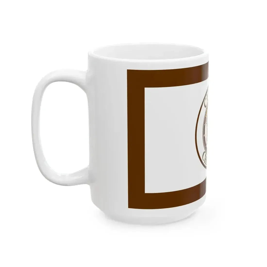 This White Coffee Mug showcases the Flag of Cheyenne, Wyoming, a city known for its Old West charm nestled in the northwestern part of the Cowboy State, United States. The design on this mug is a vibrant representation of the city's official flag, featuring a gold circle encircling 20 stars – representing Wyoming as the 44th state to join the Union – and a depiction of the historic Cheyenne-Black Hills Stagecoach Route. This mug makes an excellent gift for history enthusiasts, Wyoming residents, or anyone who appreciates unique and cool drinkware.