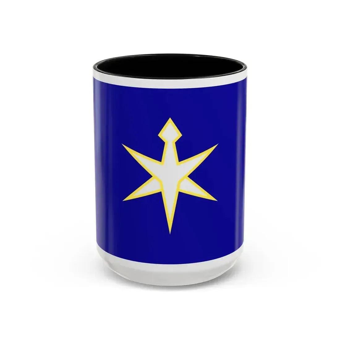 This Flag of Chiba Prefecture Japan Accent Coffee Mug is a unique way to celebrate Japanese culture in your daily routine. The mug showcases the official flag design of Chiba Prefecture, making it an excellent choice for individuals with a special interest in Japan or its regions. The graphic on the mug features the prefecture's symbol – a red kanji character for "Chiba" – elegantly embedded within a white field bordered by a stylized black wave. The design is both aesthetically pleasing and historically significant, providing a conversation piece for coffee enthusiasts or Japan admirers. Perfect for anyone who appreciates unique and cool drinkware.