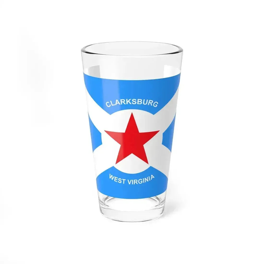 Crafted with attention to detail, this 16oz pint glass not only serves as functional drinkware but also as a conversation starter. Whether you're a history enthusiast, a local resident, or simply someone who appreciates the beauty of symbolism and heritage, this Clarksburg Flag pint glass is an ideal choice. Elevate your drink-making experience with a touch of historical charm, all while enjoying your favorite beverages.