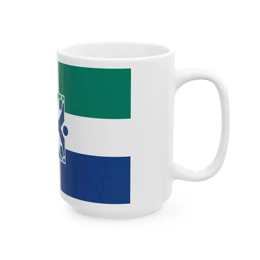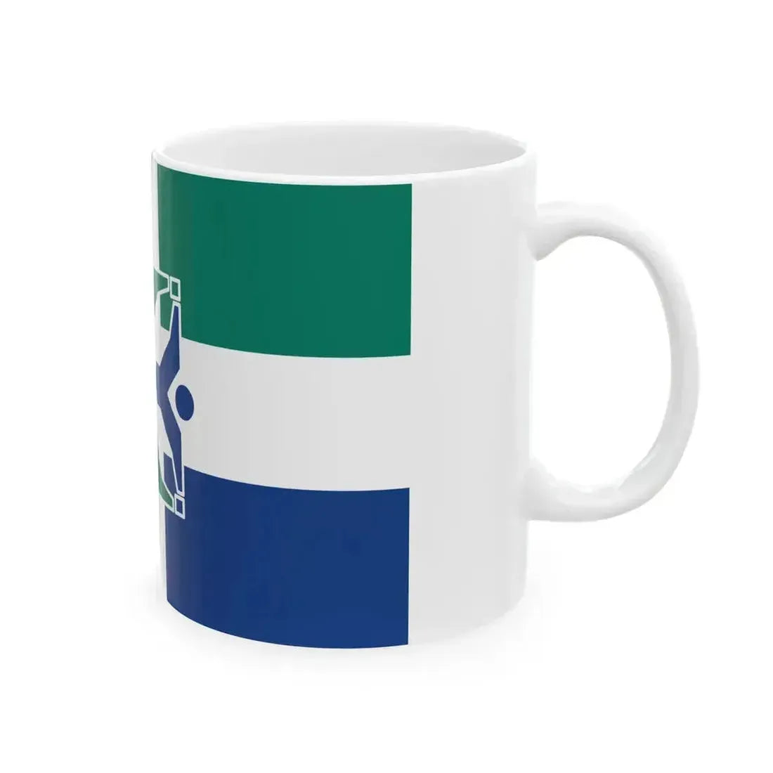 This White Coffee Mug showcases a distinctive design inspired by the Flag of Columbia, Missouri, USA. The mug features the city's flag's central elements, including the city seal with its unique combination of a compass rose, a plow, and a phoenix. This design is not only aesthetically pleasing but also symbolizes Columbia's rich history, its focus on direction and growth, and its resilience. Ideal for coffee lovers who appreciate city-themed merchandise or those with a special connection to Columbia, Missouri.