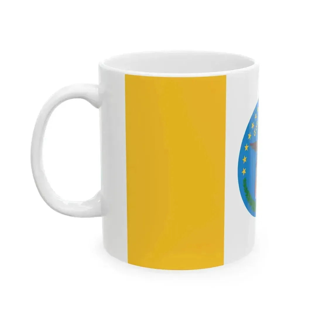 The design on this white coffee mug offers a tasteful and informative representation of the city's flag. Whether you're looking for a thoughtful gift for someone who holds Columbus dear or simply want to incorporate a piece of local art into your everyday life, this mug is an ideal choice. Its classic shape and materials make it durable enough for daily use, while its unique design adds a touch of sophistication to any table setting. This flag-themed coffee mug is perfect for anyone who appreciates unique and cool drinkware.