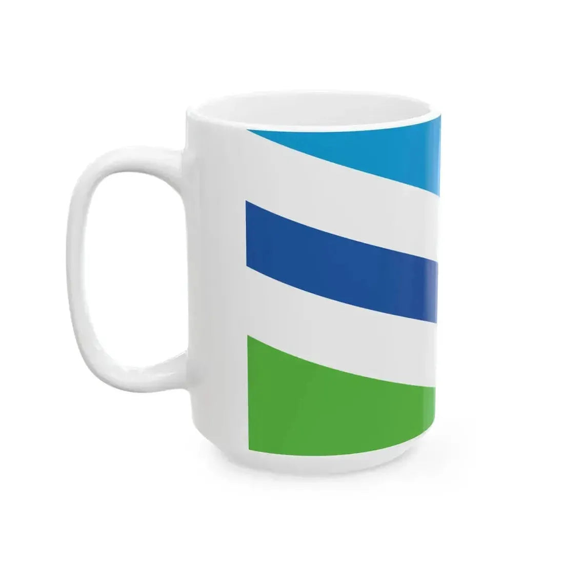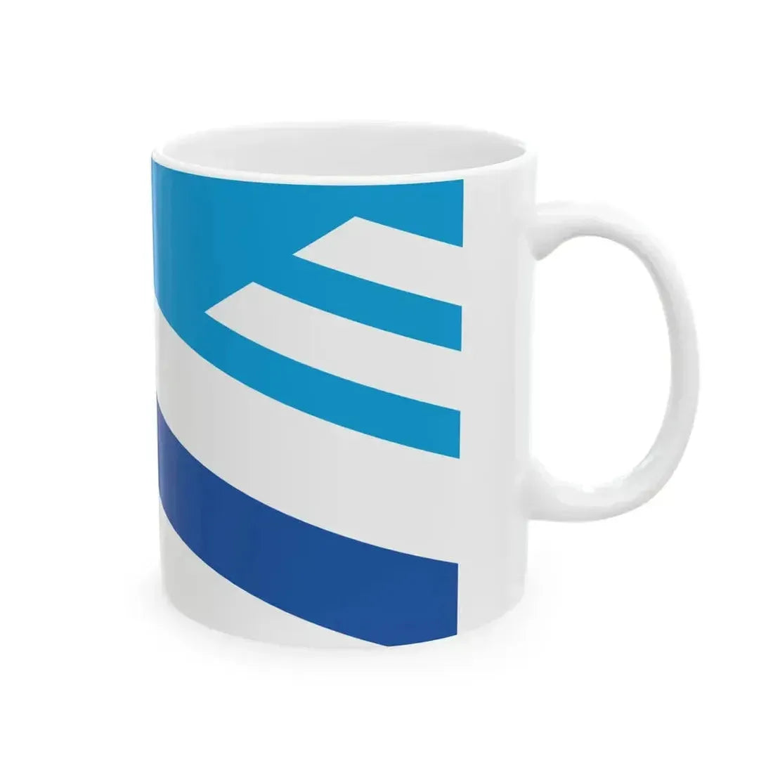 The "Flag of Dayton Ohio (United States) White Coffee Mug" showcases a unique and intriguing design that celebrates the symbolism and heritage of Dayton, Ohio. The mug displays the official flag of this vibrant city, which is composed of four horizontal stripes in the colors of red, white, and blue, with a black circle containing a yellow star in the upper left corner. This design element, known as the Buckeye State's buckeye leaf, symbolizes Ohio's nickname, "The Buckeye State."