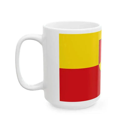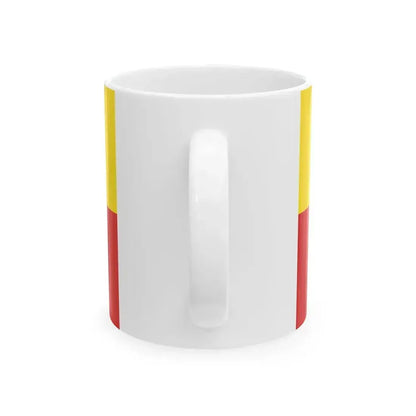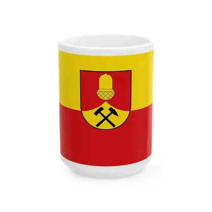 The Flag of Eichelhardt White Coffee Mug showcases a distinctive design inspired by the historical coat of arms of Eichelhardt, a small town in Germany. This mug is adorned with the symbolic imagery from the town's flag, including the black eagle perched upon a shield that bears three golden oak leaves. The intricate artwork on this mup makes it an excellent choice for anyone with an affinity towards German history or regional culture.