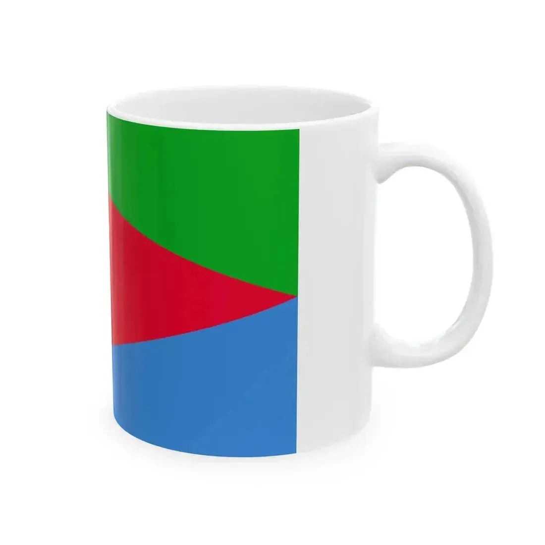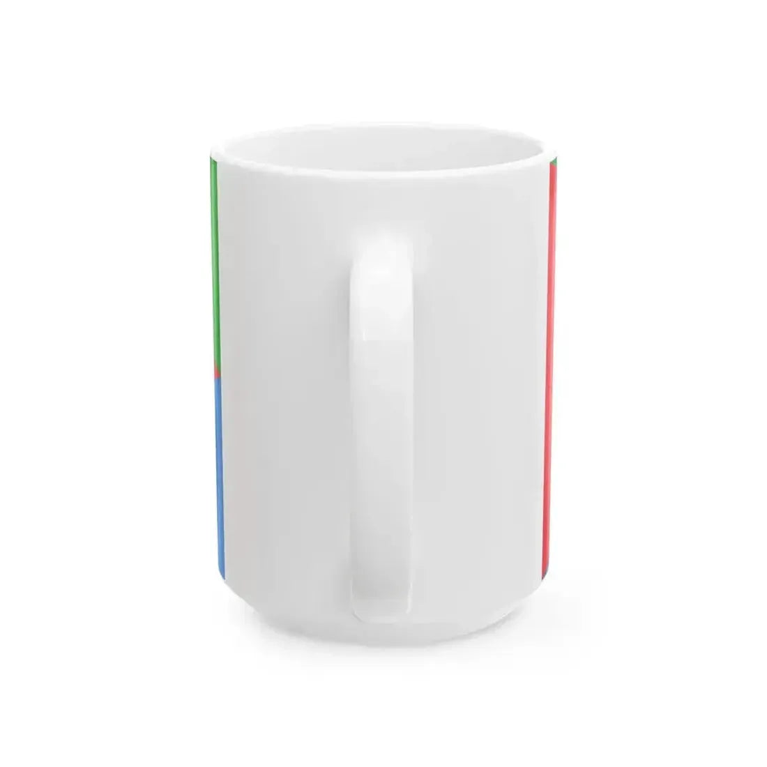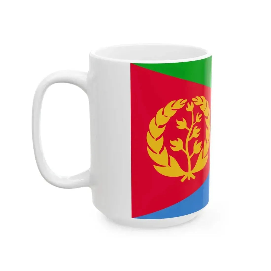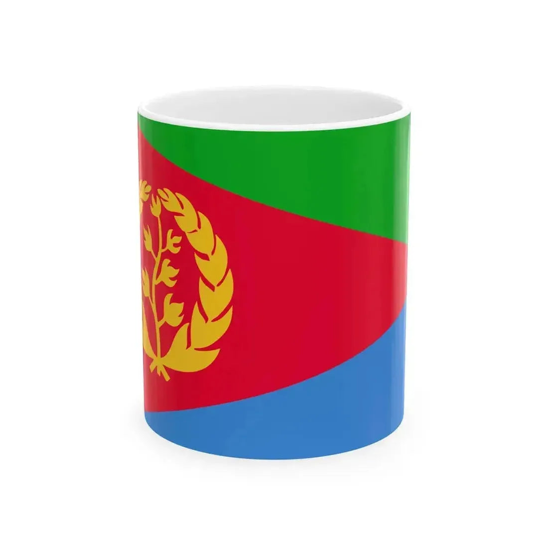 Introducing our Flag of Eritrea 3-2 White Coffee Mug, a perfect blend of art and geography for coffee lovers and collectors. This mug features the official flag of Eritrea, a symbol of national pride and identity, rendered in vibrant colors that will brighten up your morning or afternoon tea or coffee break. The design is simple yet captivating, making it an ideal addition to any collection of world flags or geographical artifacts.