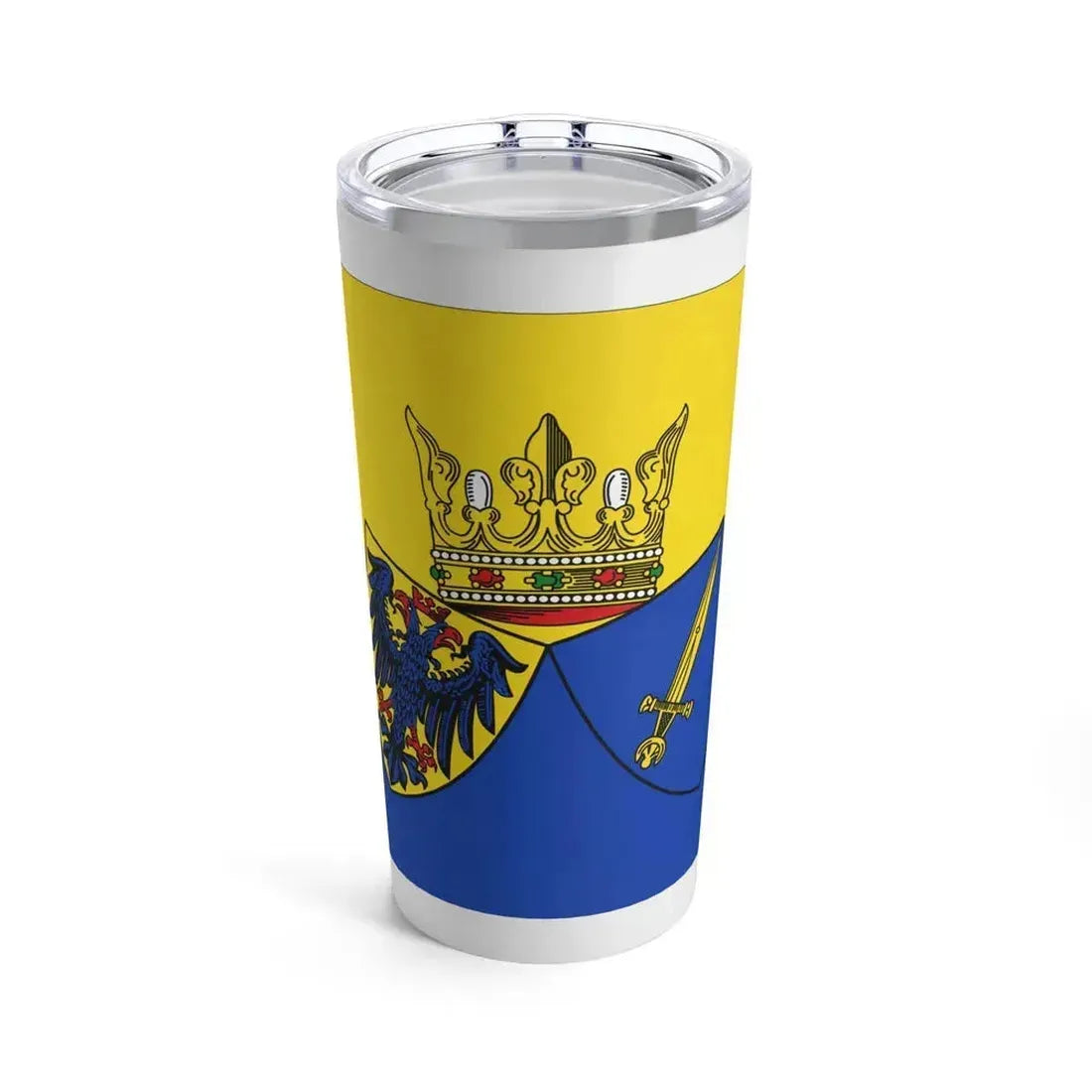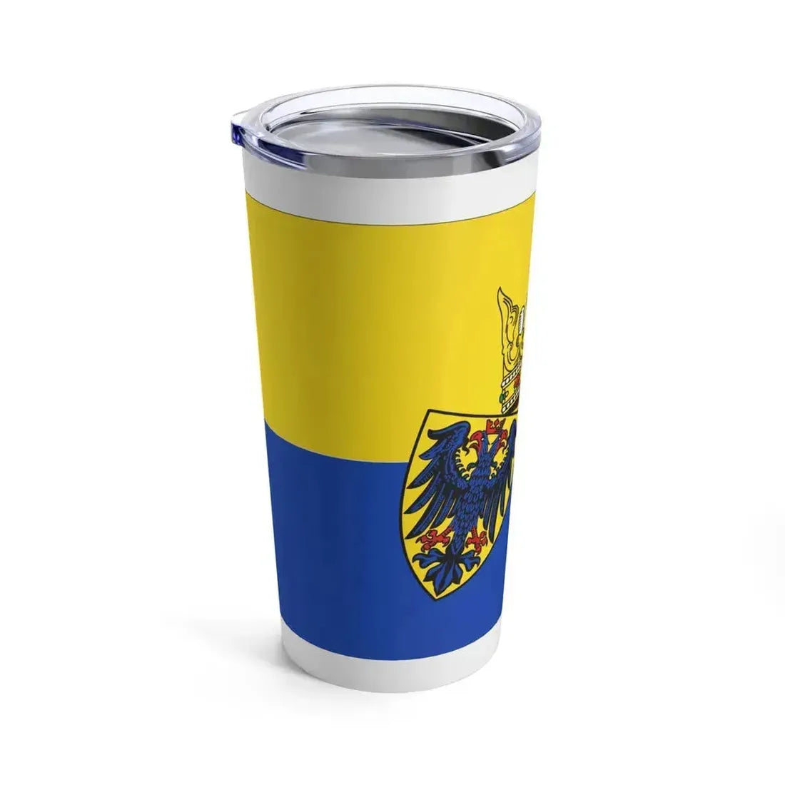 This 20oz tumbler showcases a unique design inspired by the Flag of Essen, Germany. The flag's vibrant colors, symbolizing unity and pride, are artfully reproduced on this durable drinkware piece. The cross potent, a historical emblem of the city, is prominently displayed in its traditional red and yellow hues, while the city's coat of arms adds an authentic touch. Ideal for those with a penchant for German culture or those who appreciate intricate design, this tumbler makes a stylish addition to any collection.