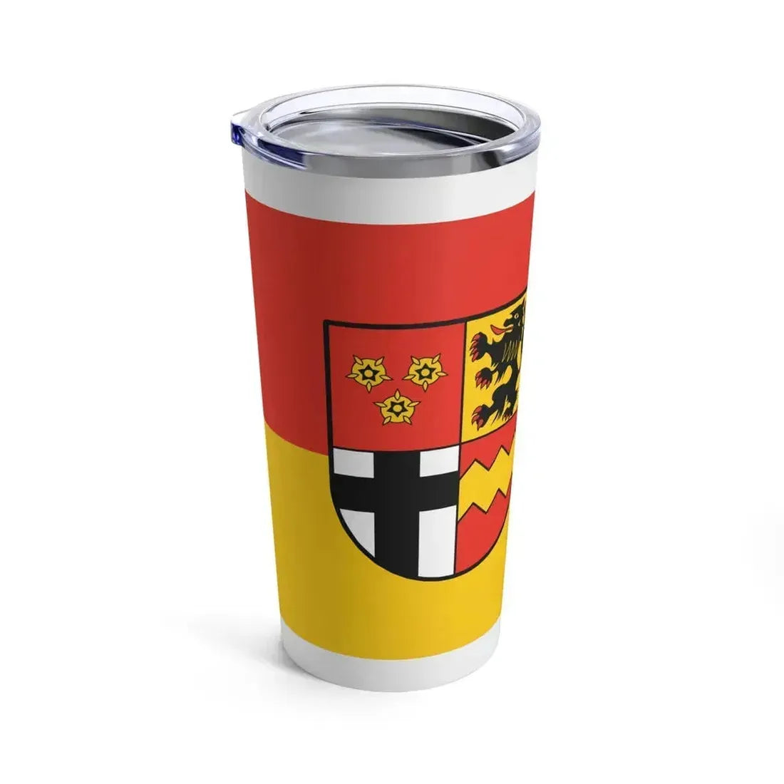 This 20oz tumbler showcases a unique design inspired by the Flag of Euskirchen, Germany. The flag's distinctive pattern, featuring a red square field with a white St. George's Cross, is beautifully rendered on this drinkware. This design is perfect for anyone who appreciates German culture, history, or symbolism, making it an excellent gift for travelers, expats, or history enthusiasts.
