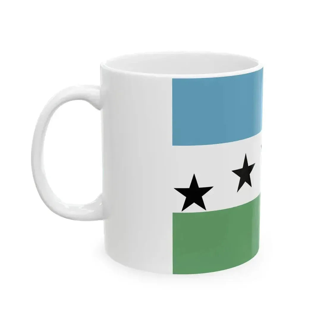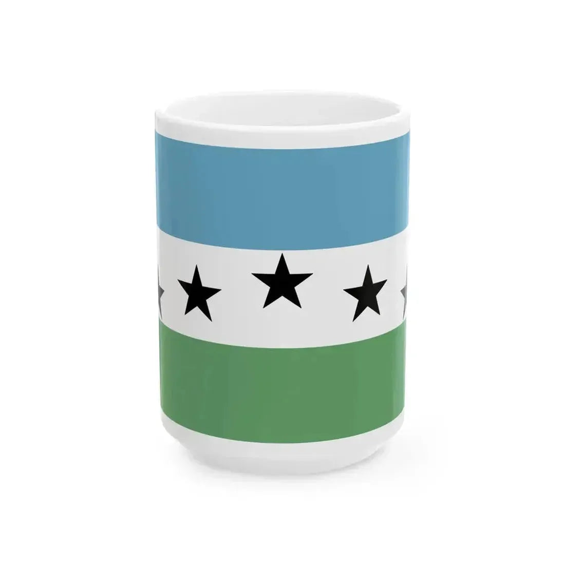 This White Coffee Mug showcases a unique design inspired by the Flag of Firestone, Colorado, a city nestled in the heartland of the United States. The flag, like this mug, represents the spirit of community, history, and pride that resides in Firestone. The artwork on the mug mirrors the American flag's colors and layout, with a twist to incorporate the local flag's distinctive emblem - a shield bearing three towers symbolizing the city's industrial heritage.