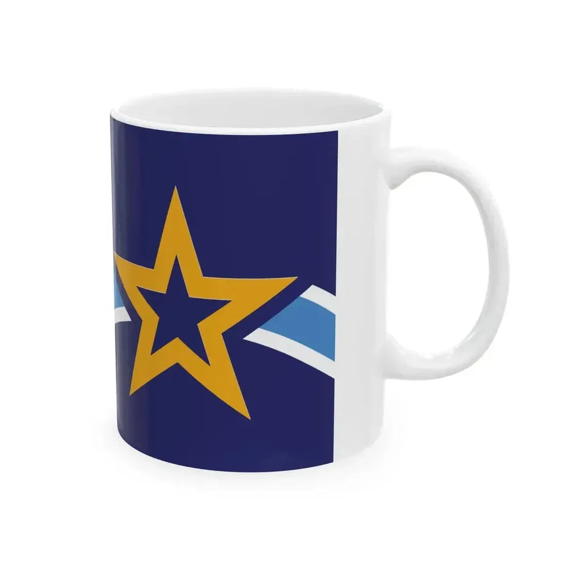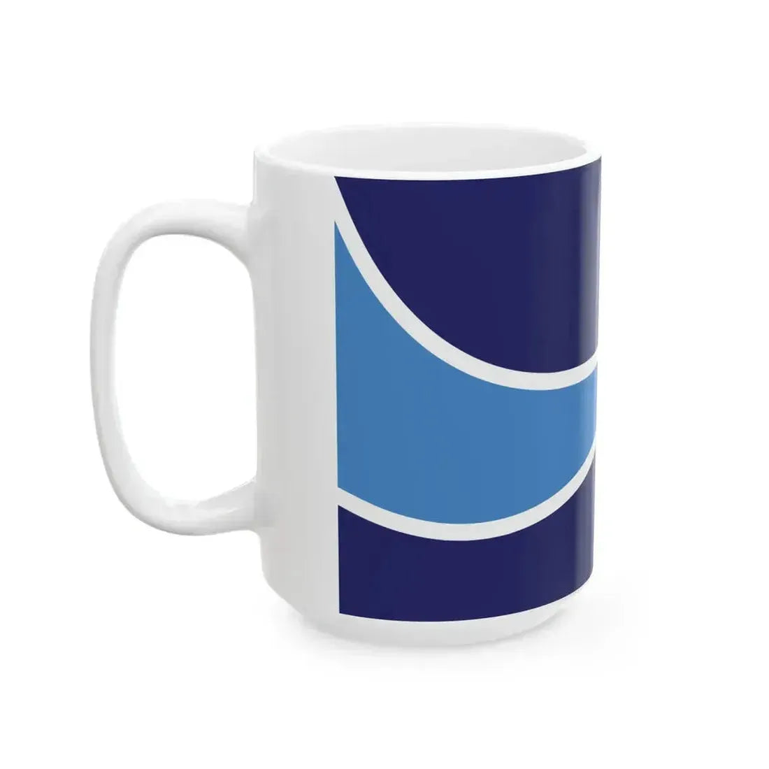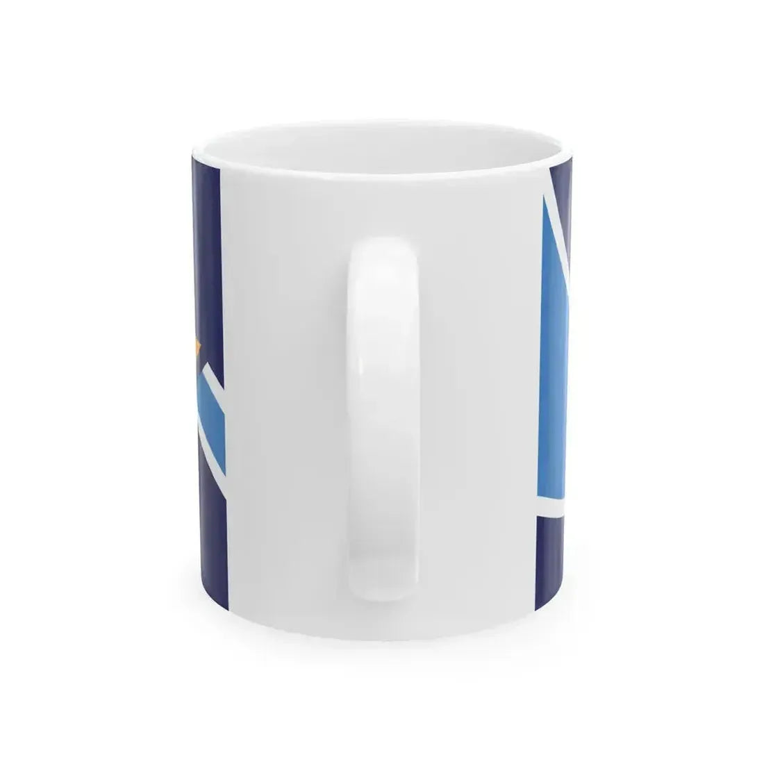This White Coffee Mug showcases a design inspired by the Flag of Frankfort, Kentucky, United States. The artwork on this mug features a bold and vibrant rendition of the city's official flag symbol, including the state seal encircled by laurel branches on a white background. This unique drinkware is ideal for history enthusiasts or anyone with a special connection to Frankfort, Kentucky.