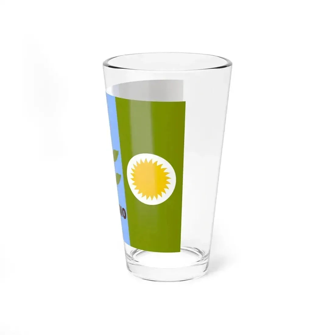 The Flag of Fresno, California pint glass is a unique and thoughtful drinkware item that showcases the city's pride and symbolism. This 16oz glass proudly displays the official design of the Fresno flag, which features an olive branch, wheat stalk, and the city seal on a white background with red and blue accents. This design represents Fresno's agricultural heritage and civic spirit. History enthusiasts and locals who cherish their hometown will find this glass a perfect addition to their collection.