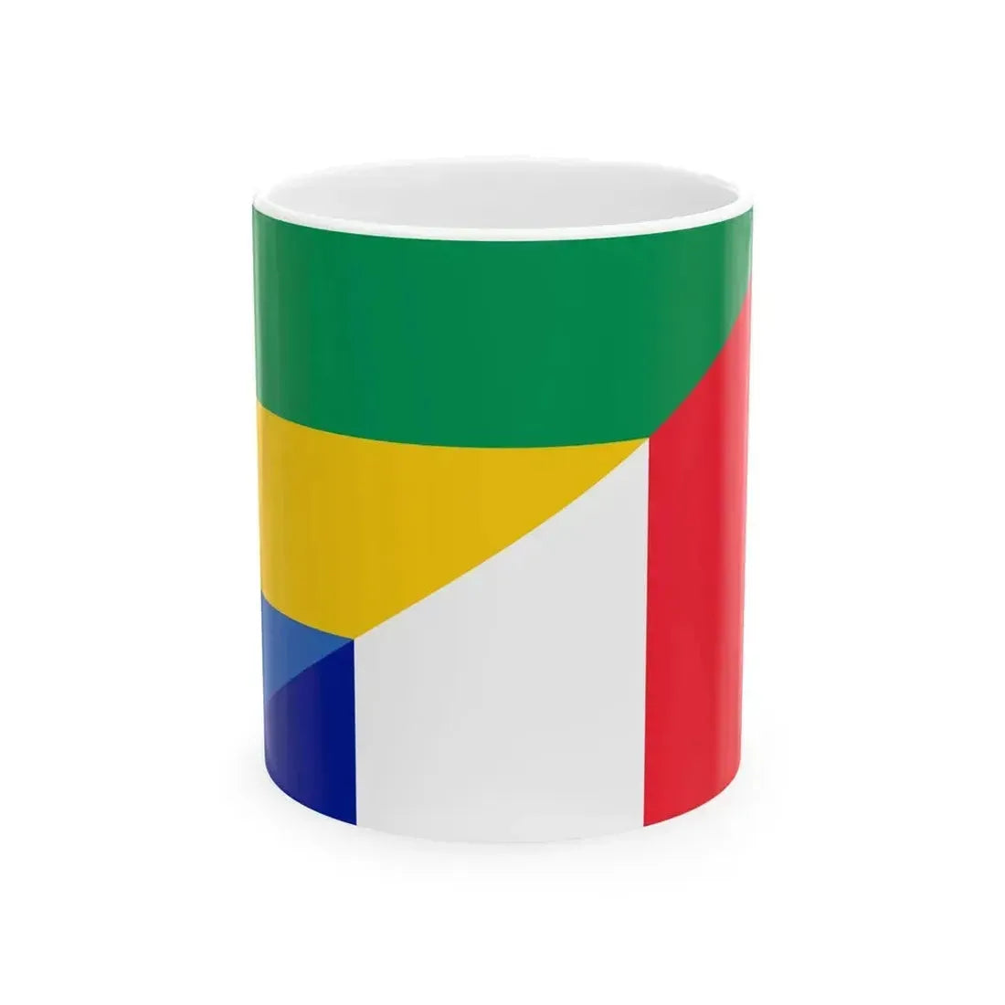 This White Coffee Mug features a unique design that showcases both the Flag of Gabon and France. The top half of the mug represents the tricolor flag of France with its blue, white, and red vertical stripes, while the bottom half depicts the flag of Gabon - green field with a large yellow star in the center. This dual design is perfect for anyone who appreciates unique and cool drinkware, as well as those with an interest in geography, flags, or both France and Gabon.