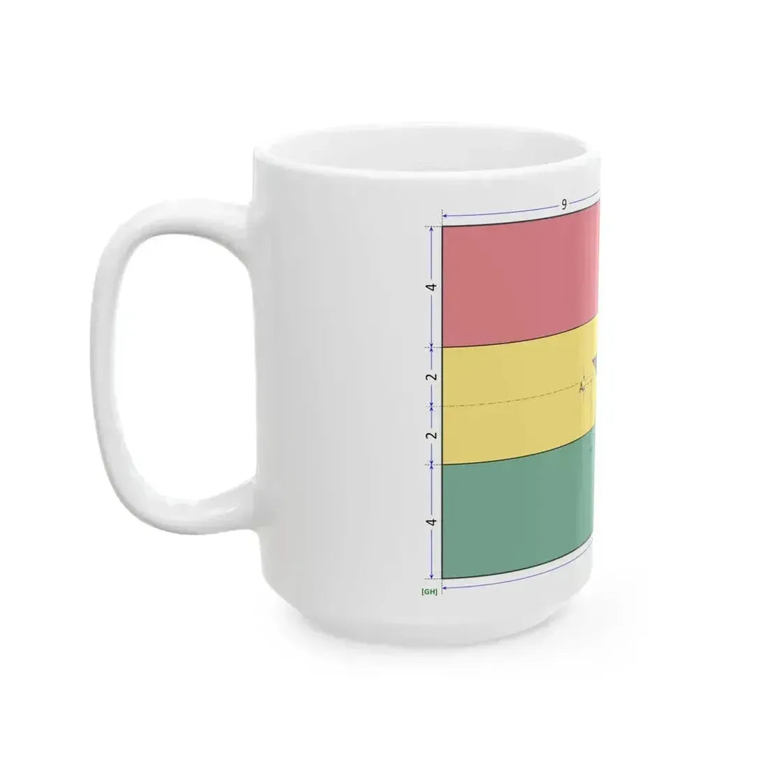The "Flag of Ghana construction sheet (Ghana) White Coffee Mug" is a unique piece of drinkware that showcases the national flag of Ghana. This mug features an intricate design of Ghana's flag, which consists of three equal horizontal stripes of red, yellow, and green, with a black five-pointed star centered in the middle of the topmost stripe. The mug's design serves as a tribute to Ghana's rich history and vibrant culture, making it an ideal choice for individuals who appreciate African artistry or have an affinity towards Ghanaian heritage. This mug is not only functional but also a thoughtful gift idea for anyone with an interest in Africa or Ghana. Perfect for anyone who appreciates unique and cool drinkware.