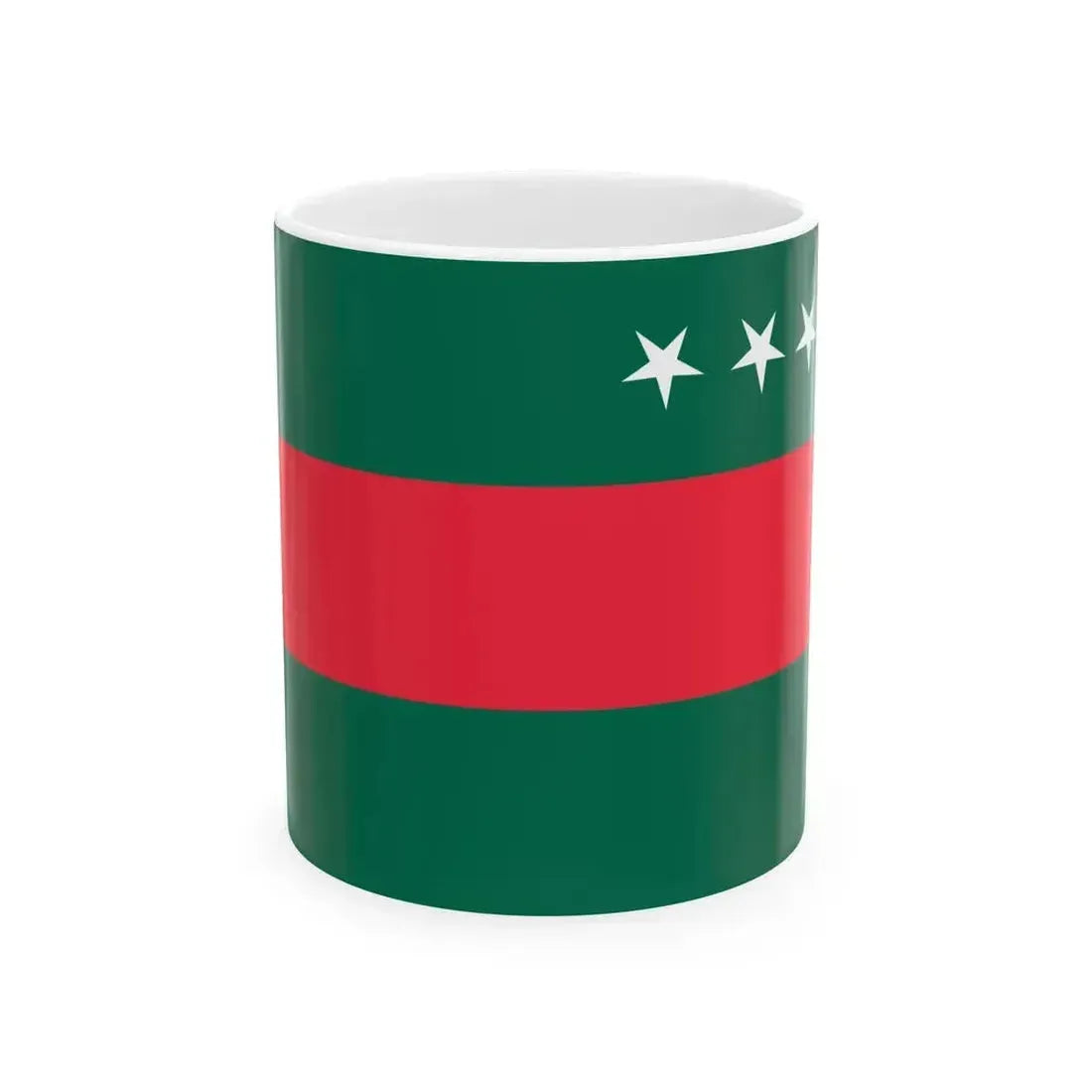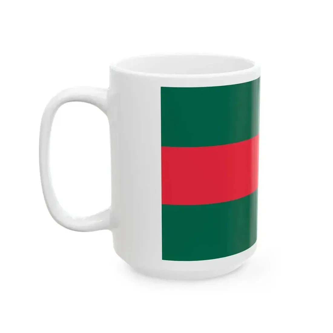 This white coffee mug showcases an iconic design - the Flag of Gono Odhikar Parishad (Bangladesh). The flag's vibrant red, green, and yellow colors symbolize the spirit of freedom and justice that this Bangladeshi political organization represents. The eight-pointed star in the center signifies unity, while the stylized tiger represents strength and courage. This mug makes a unique addition to any collection of coffee drinkware or a thoughtful gift for those who appreciate the history and culture of Bangladesh.