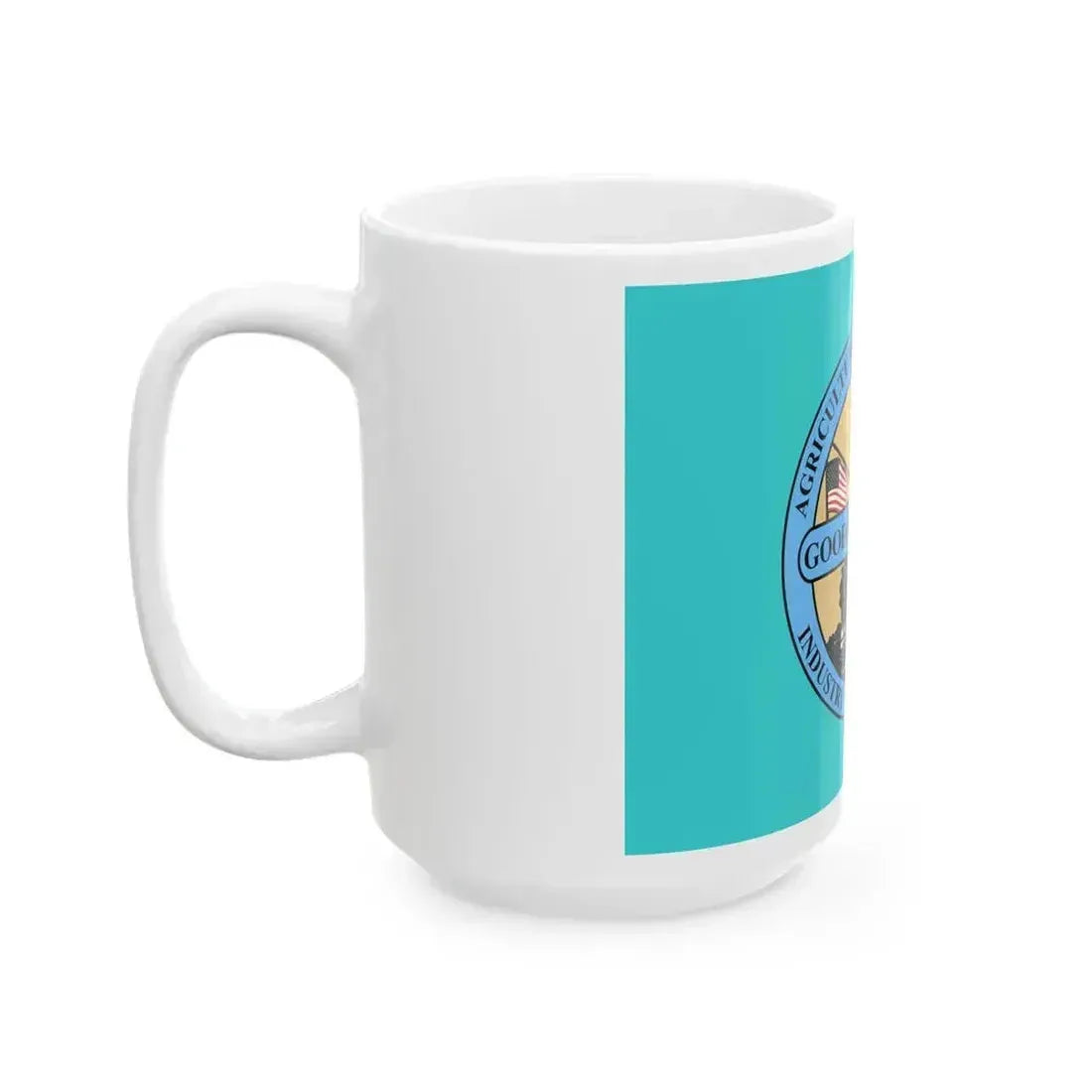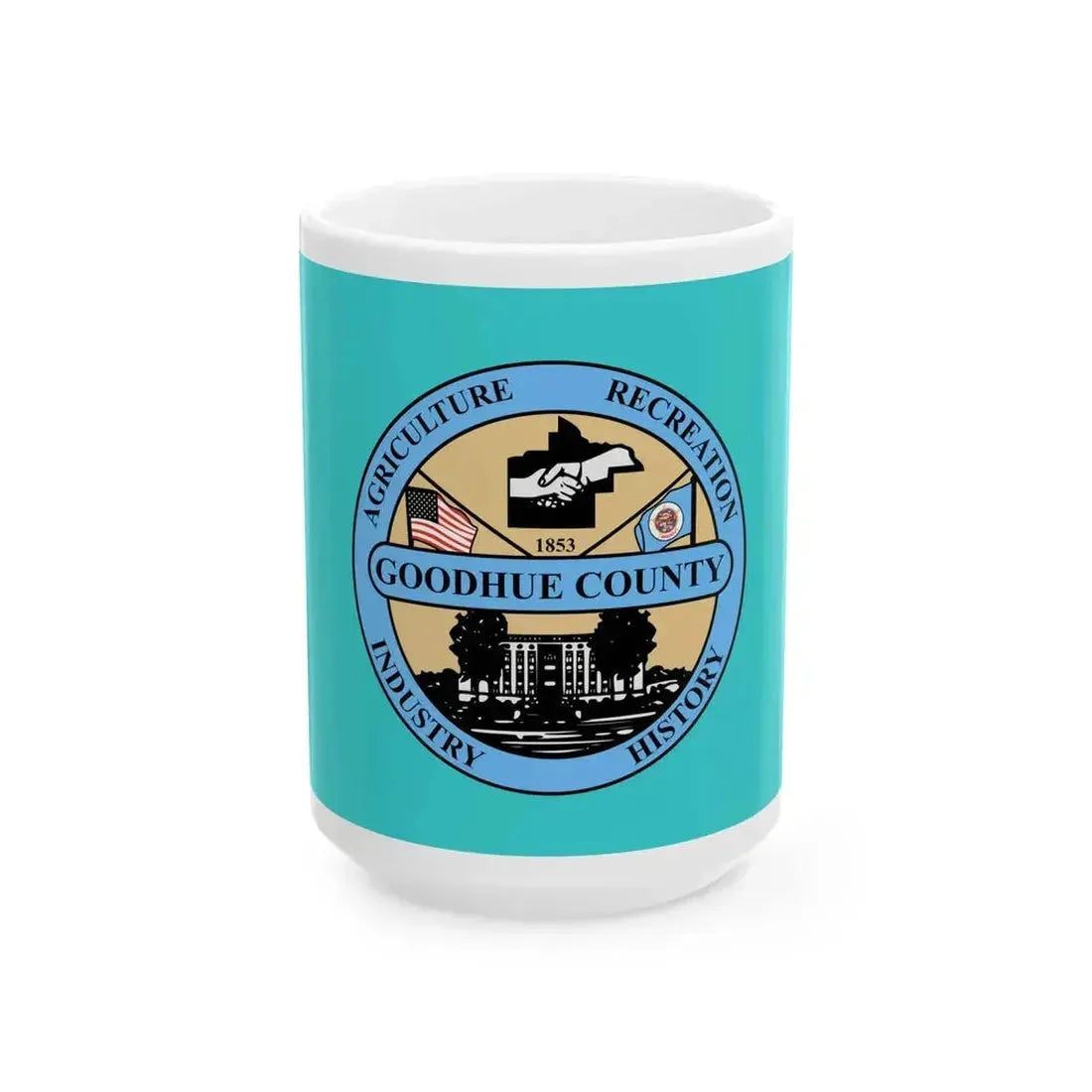 This White Coffee Mug features a distinctive design inspired by the Flag of Goodhue County, Minnesota, United States. The flag's vibrant colors and symbolism are beautifully rendered on this mug, making it an excellent choice for those who appreciate American county flags or have a special connection to Goodhue County. The design includes the county's seal, which showcases a shield divided into four quadrants, each featuring unique emblems representing agriculture, commerce, industry, and the arts. Surrounding the seal are thirteen stars, symbolizing the original colonies.