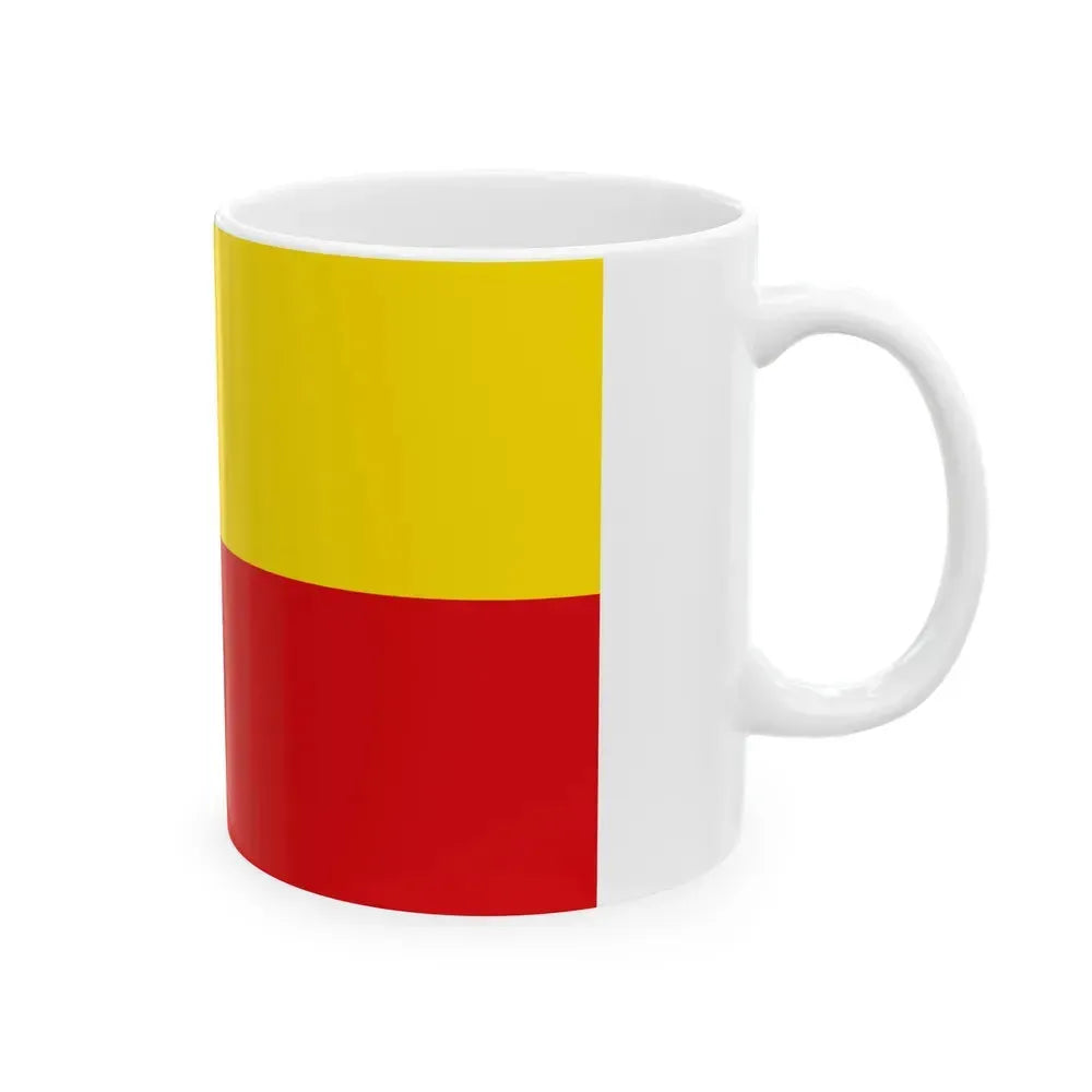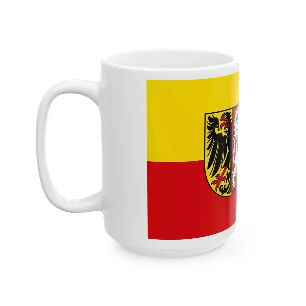This White Coffee Mug showcases the Flag of Goslar, Germany, beautifully transforming your beverage experience into a tribute to this historic city. The flag, adopted in 1924, features a golden lion on a red background with three silver bars representing the town's ancient coat of arms. By sipping from this mug, you carry a piece of Goslar's rich heritage wherever you go.