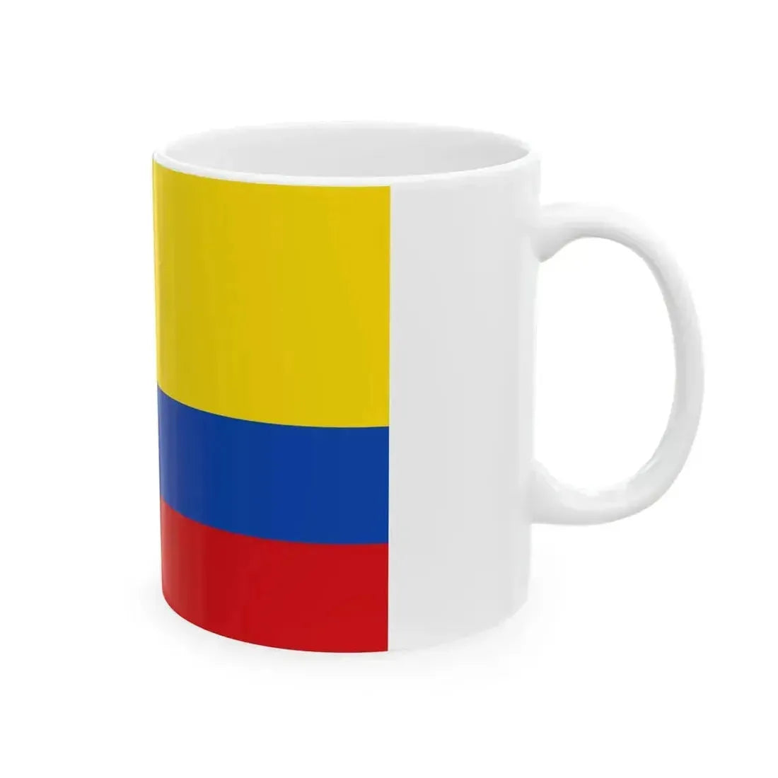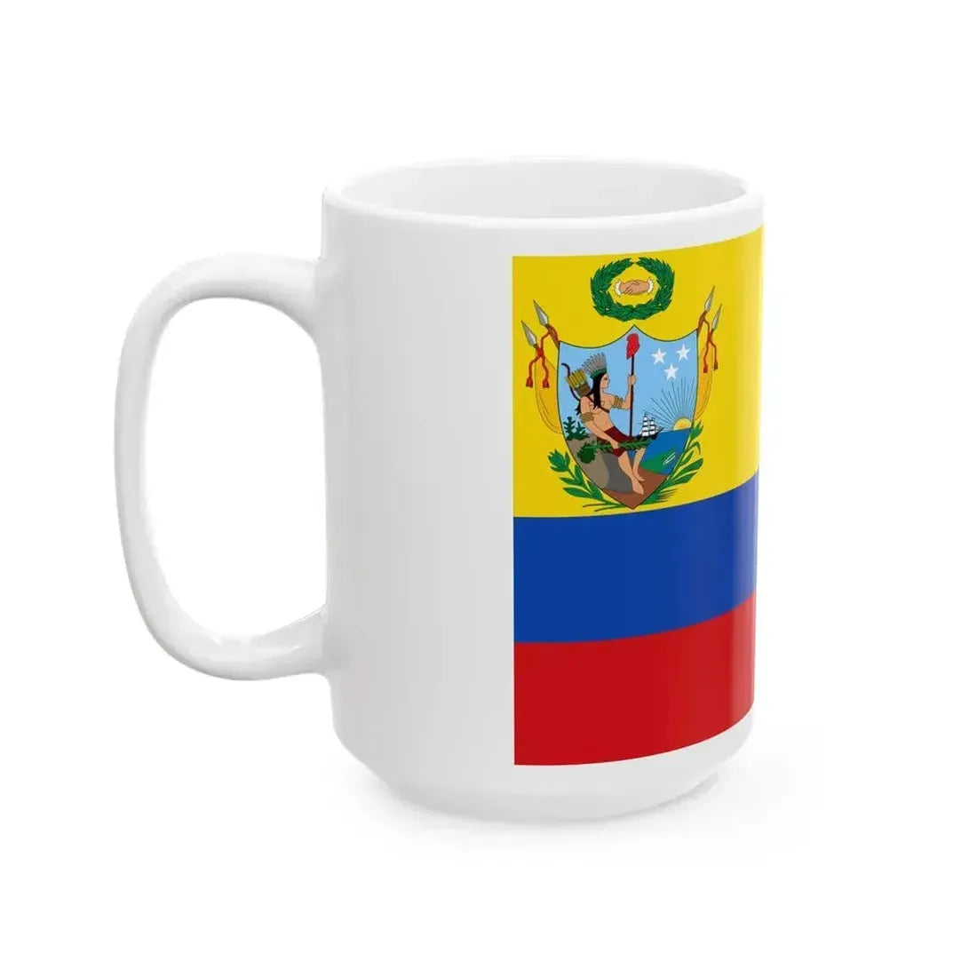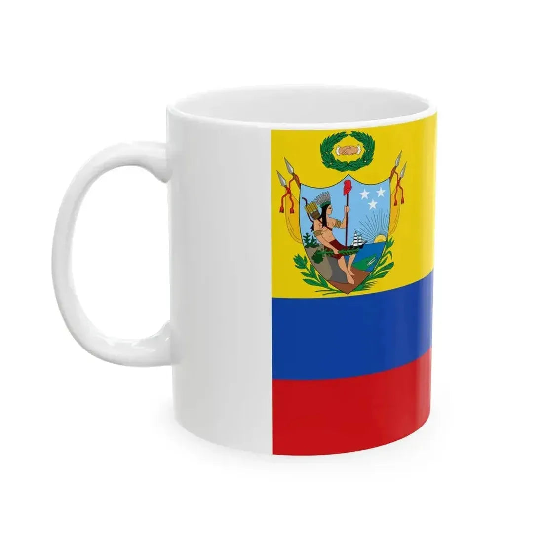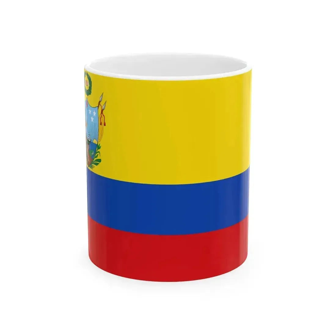 This White Coffee Mug showcases an intriguing historical design โ€“ the Flag of Gran Colombia (1819-1820), the banner that represented a short-lived but significant union of what are now modern Colombia, Ecuador, Panama, Peru, and Venezuela. The flag symbolizes the unity and independence of these South American nations during their struggle for liberation from Spanish rule. This unique coffee mug is an excellent choice for history enthusiasts, or anyone interested in South American culture, politics, or iconography.
