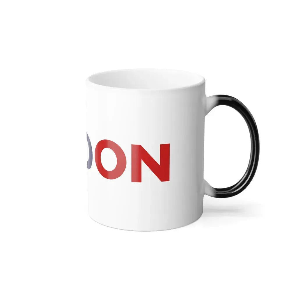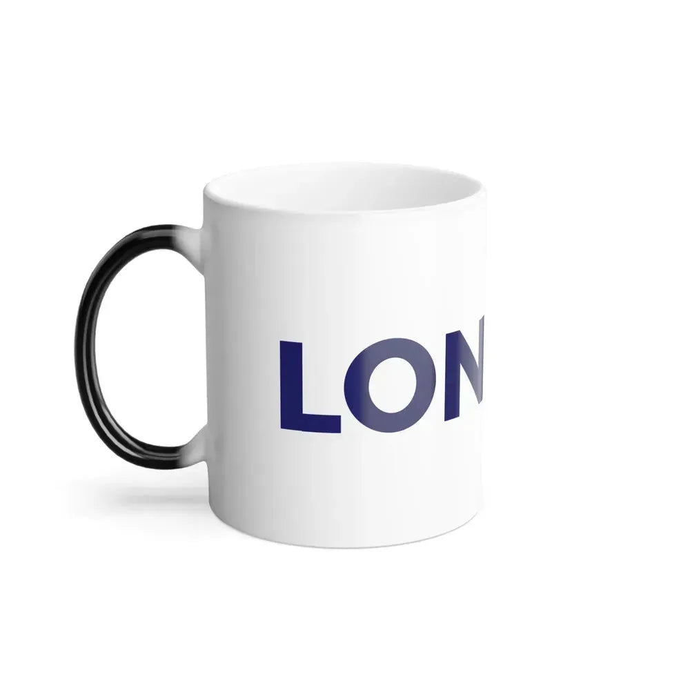 Hey there! This mug's got a secret - starts black, but when you brew up some tea or coffee, a gorgeous "Flag of Greater London UK -" design magically appears! You'll see all sorts of cool stuff like eagles, flags, and those awesome London markings. It's a total eye-popper when the heat hits.