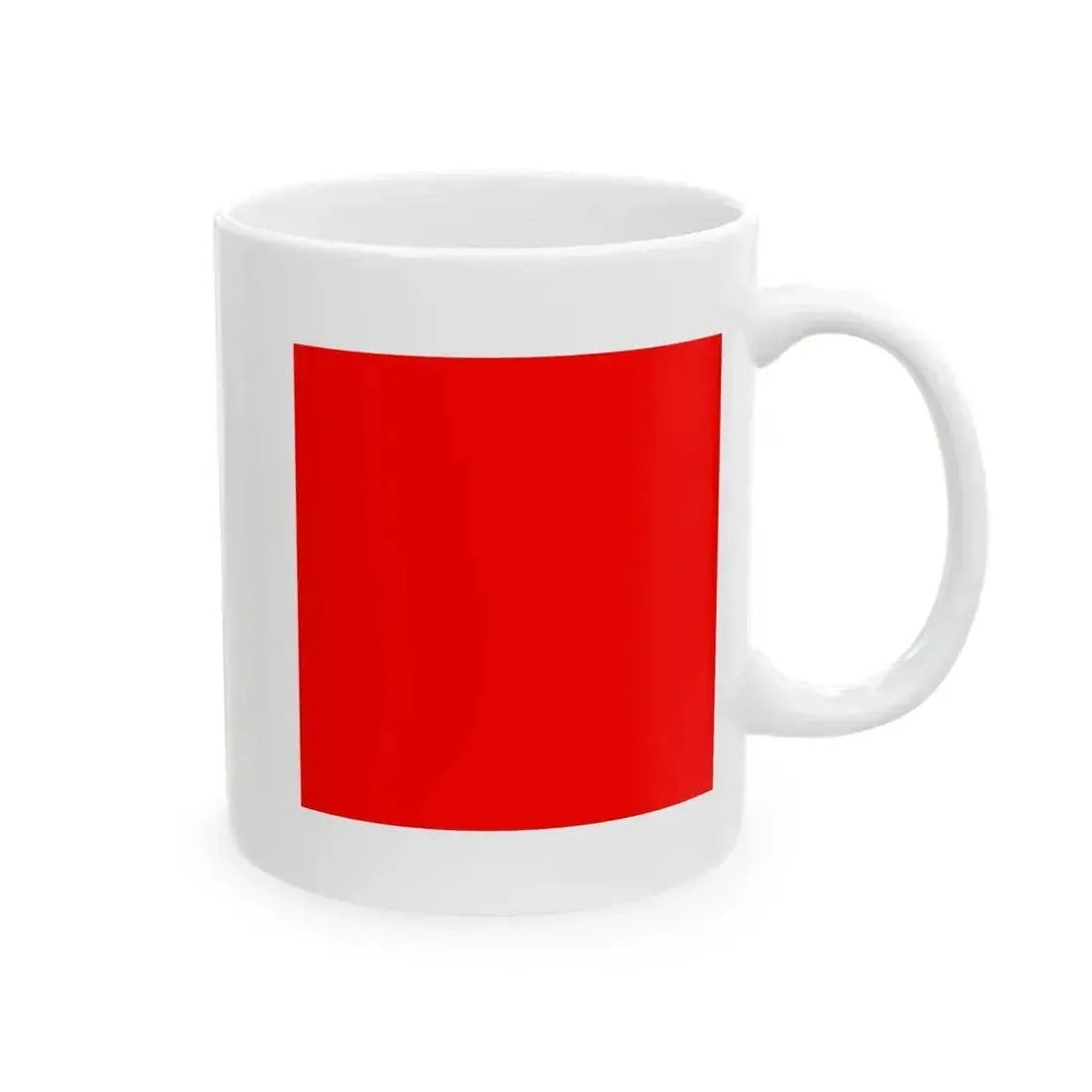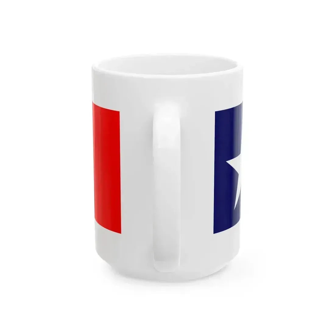 This white coffee mug showcases the Flag of Grimes County, Texas (United States), making it a unique and captivating addition to any breakfast nook or office desk. The design is an exact replica of the county's official flag, which features a blue field with a white star in the upper left corner, representing Texas, and a red, white, and blue bar across the bottom, symbolizing the American flag. This mug is perfect for history buffs, Texans at heart, or anyone who appreciates unique and cool drinkware.