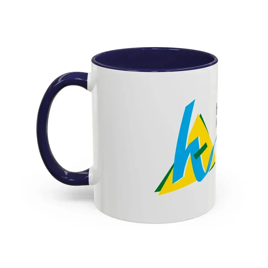 Accent ceramic mugs with a glossy white exterior and a colored interior & handle. Offered in 11 oz (≈330 ml) and 15 oz (≈440 ml), these mugs pair strong visual contrast with everyday durability — lead- and BPA-free.