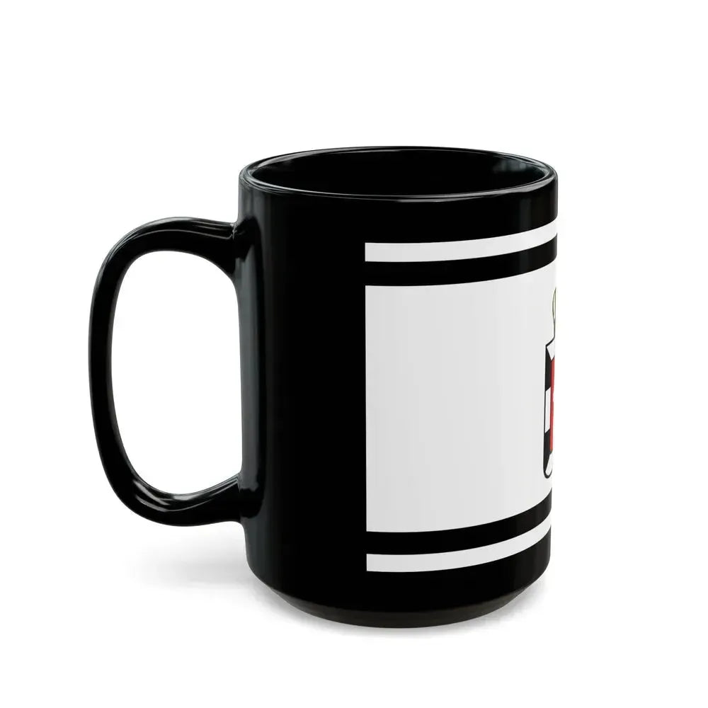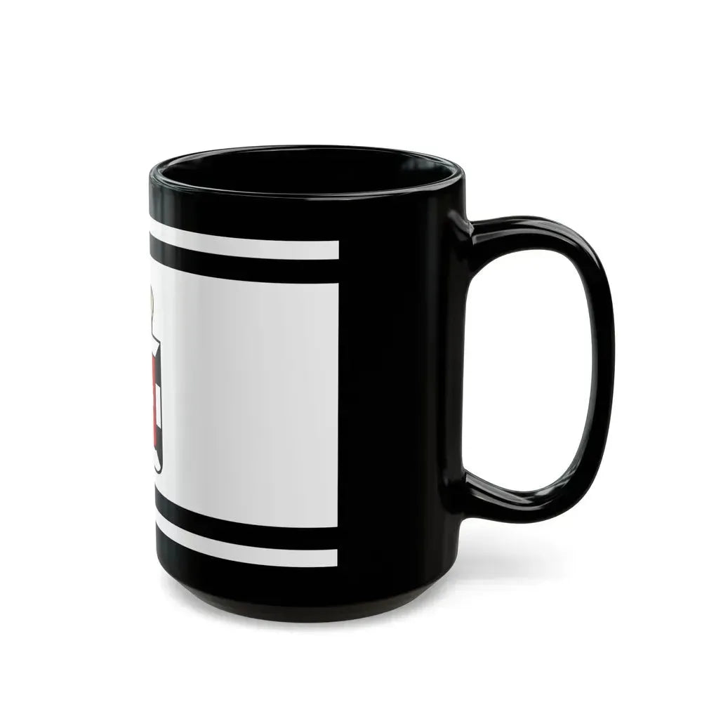 This Black Coffee Mug showcases a unique design inspired by the Flag of Herzogtum Lauenburg, Germany. The Flag, dating back to the Middle Ages, symbolizes the rich history and culture of this ancient duchy. The design replicates the flag's heraldry, featuring three red bars on a white background - a testament to the duchy's long-standing heritage.
