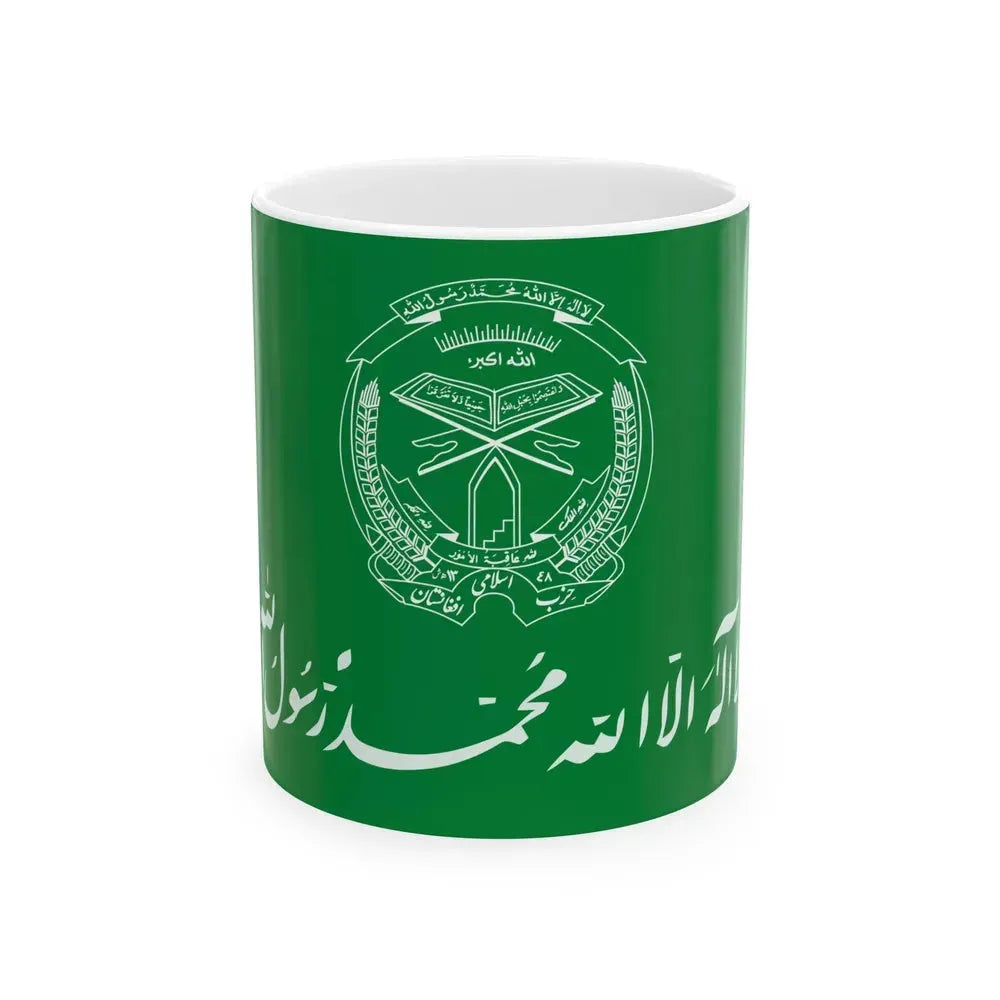 This White Coffee Mug features the flag of Hezb-e Islami Gulbuddin, a political party and militant group in Afghanistan. The design on this mug showcases the organization's distinctive emblem and color scheme, symbolizing its commitment to Islamic rule and jihadist ideology. This mug is perfect for anyone with an interest in Middle Eastern history, politics, or conflict studies.
