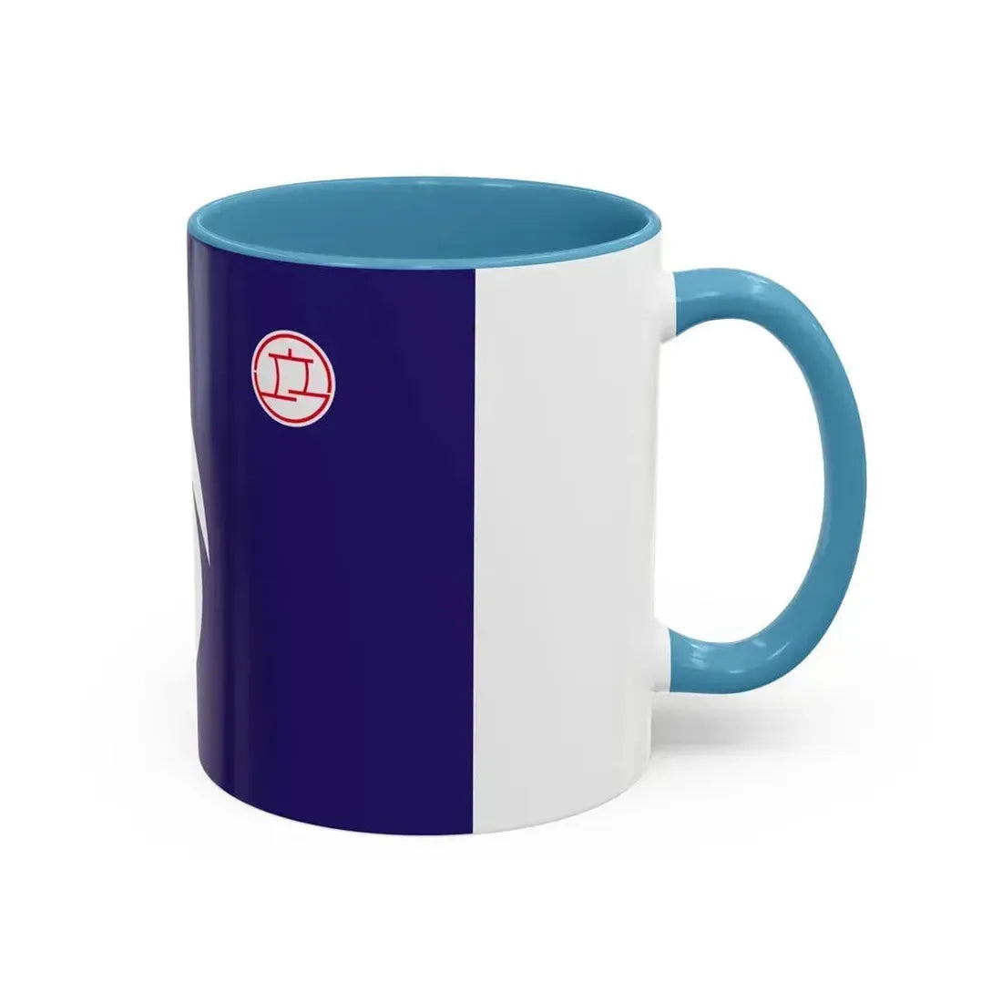 The "Flag of Hirakata Osaka Japan - Accent Coffee Mug" is a thoughtful fusion of beverage and culture. This ceramic mug boasts an intricate design inspired by the flag of Hirakata City, a vibrant and historic district within the bustling metropolis of Osaka, Japan. The artwork on the mug showcases the city's emblem - a stylized cherry blossom branch against a field of deep blue, symbolizing peace, strength, and resilience. Perfect for anyone who appreciates unique and cool drinkware, this mug offers more than just a vessel for your favorite beverage; it serves as a charming reminder of Japan's rich heritage.