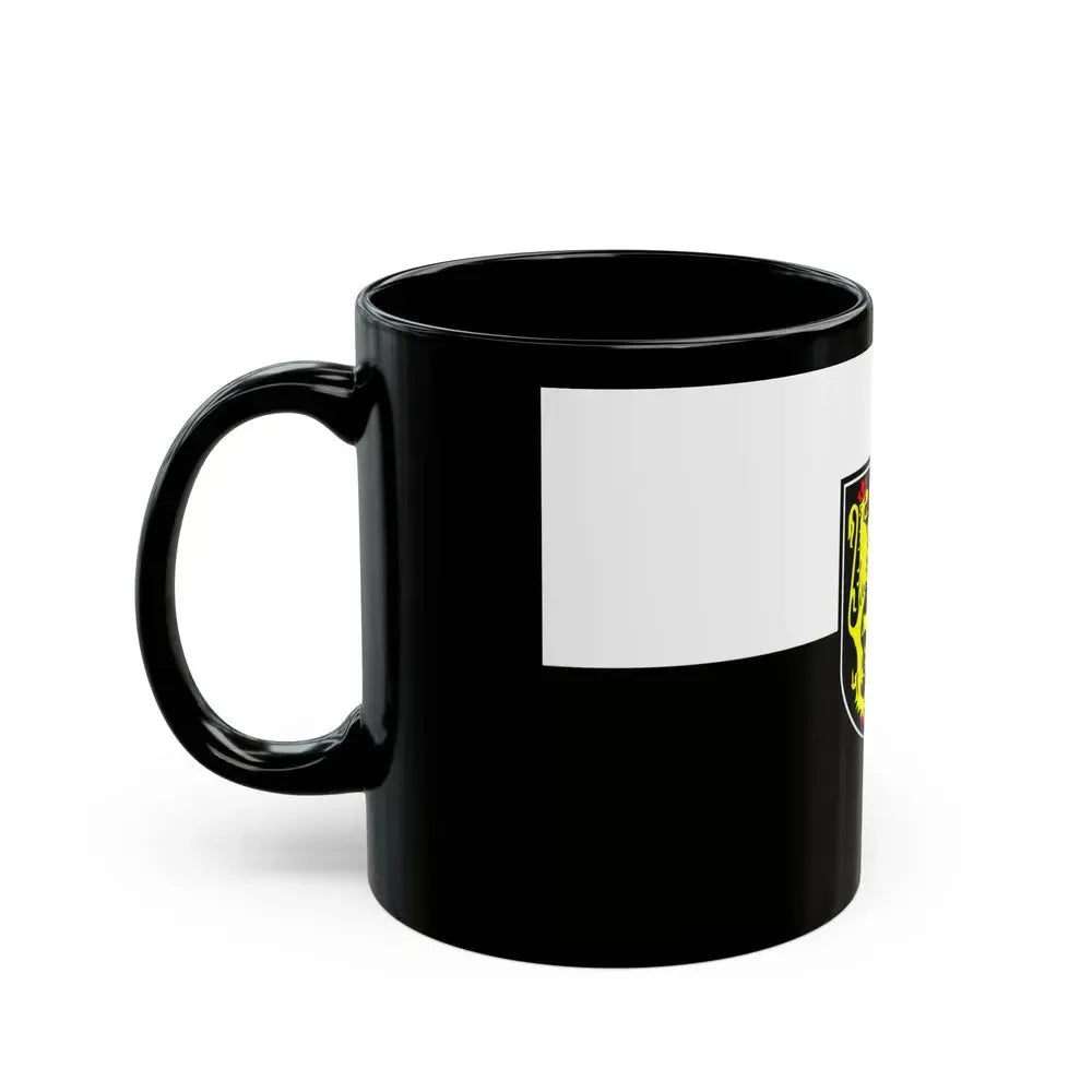 The Flag of Hof Germany - Black Coffee Mug is a thoughtful blend of tradition and modernity, perfect for coffee lovers with an affinity for German culture or regional history. This mug showcases the flag of Hof, a charming town in Bavaria, Germany. The design features the town's coat of arms, adorned with a black lion, symbolizing strength and courage, against a white background. The Bavarian cross, a distinctive symbol of the region, can also be spotted in the upper left corner. This mug is more than just a drinkware; it's a tribute to the rich history and spirit of Hof, Germany. It makes an excellent gift for those who cherish unique and meaningful items that reflect cultural heritage.
