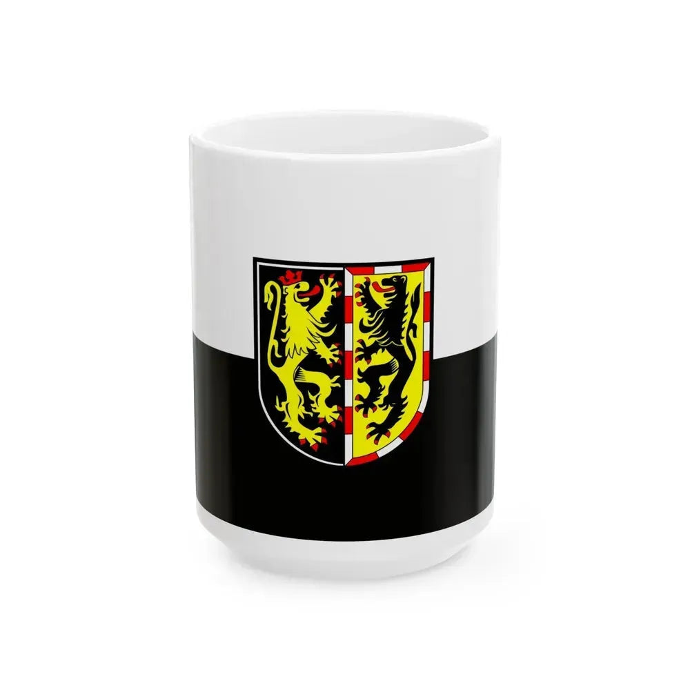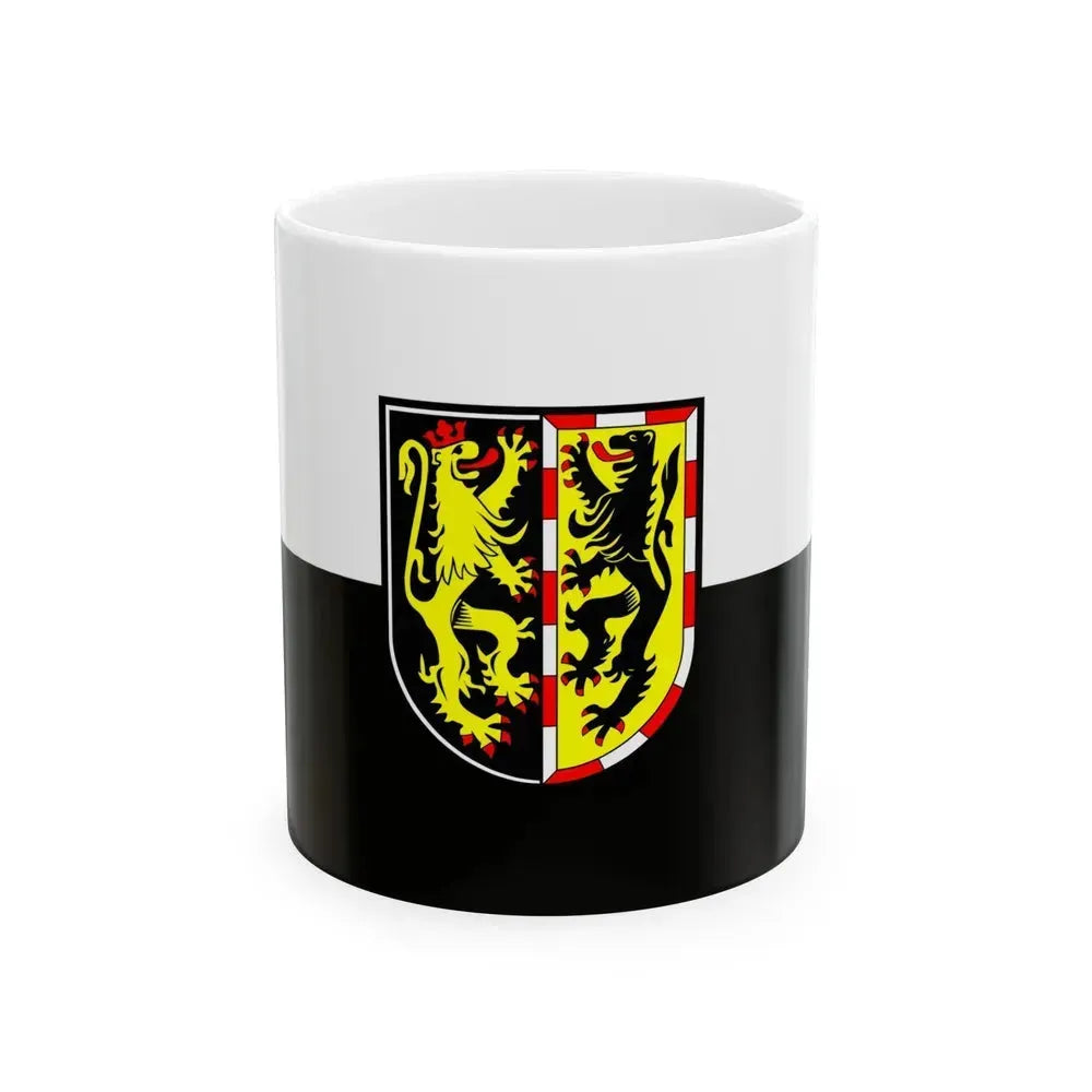 Delve into the rich history of Germany with this Flag of Hof coffee mug. The design features the official coat of arms of Hof an der Saale, a charming town located in Bavaria, southern Germany. This unique piece of art showcases the town's history and pride, making it a perfect conversation starter at your morning coffee break. Ideal for history buffs, travel enthusiasts, or anyone who appreciates unique and cool drinkware.