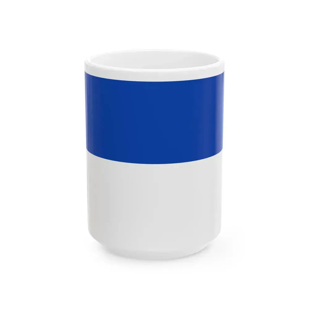 This White Coffee Mug showcases a design inspired by the Flag of Holzminden, Germany. The iconic emblem features a black eagle perched on top of a green mountain, symbolizing strength and resilience. The flag's red and white stripes run along the mug's body, adding a patriotic touch to your morning brew. Ideal for coffee enthusiasts who appreciate unique and cool drinkware, as well as anyone with a connection to Germany or Holzminden.