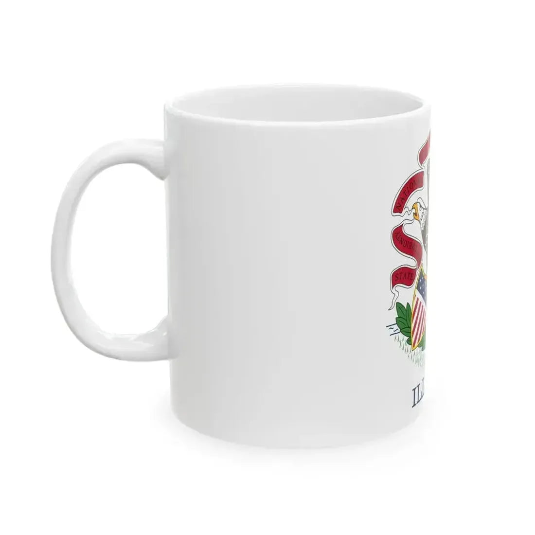 This White Coffee Mug showcases a replica of the Flag of Illinois, one of the 50 states in the United States. The flag's design features a plain field of white, with a red-and-white striped emblem known as the state seal placed near the hoist side. The seal depicts a Native American and a pioneer handshaking above a plow, symbolizing harmony between the original inhabitants and the new settlers. This unique drinkware is perfect for anyone who appreciates unique and cool drinkware, as well as those with an interest in the history and symbolism of Illinois.