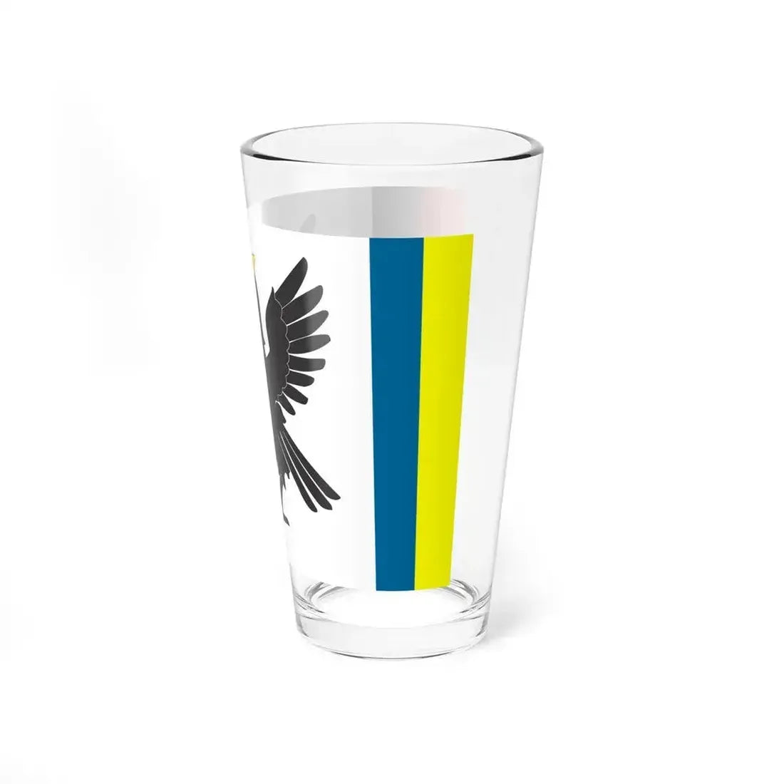 This 16oz pint glass showcases the Flag of Ivano-Frankivsk Oblast, a region in Western Ukraine known for its picturesque landscapes and rich history. The design on this drinkware captures the flag's distinctive blue field with the golden tryzub, or trident, symbol, which is emblematic of Ukraine's identity. The trident, a significant Slavic mythological artifact, is positioned above a shield adorned with an image of St. George, the patron saint of Ukraine. This glass offers a unique opportunity to celebrate Ukrainian culture and history in a practical and stylish way.