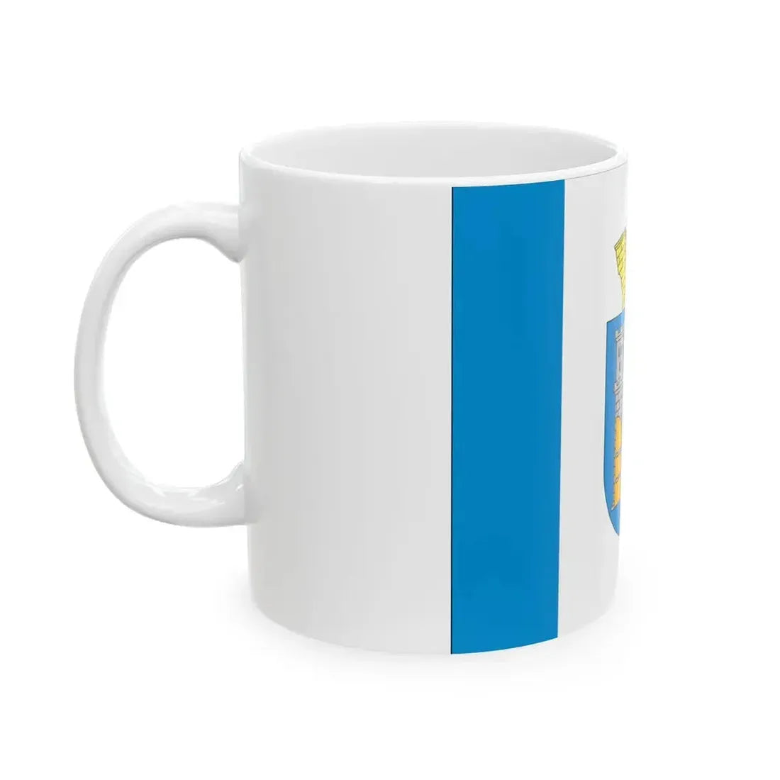 This White Coffee Mug showcases the flag of Ivano-Frankivsk, a historic city located in western Ukraine. The design features the official emblem of the region, which includes a shield adorned with the city's coat of arms. The shield displays an image of St. George slaying a dragon, symbolizing courage and protection. The mug is ideal for anyone who appreciates unique and cool drinkware, as well as those with a fondness for Ukraine or Ivano-Frankivsk, making it a thoughtful gift for friends or family members with these connections.