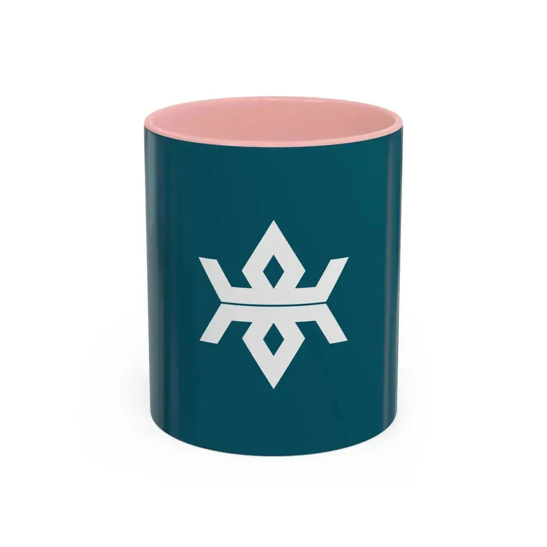 This Accent Coffee Mug showcases the design inspired by the Flag of Iwate Prefecture in Japan. The flag, bearing a stylized cherry blossom tree on a white field with two red diagonal bars, symbolizes the prefecture's history and resilience. This mug is an excellent representation for those who appreciate Japanese culture, especially the traditions and symbolism associated with Iwate Prefecture.